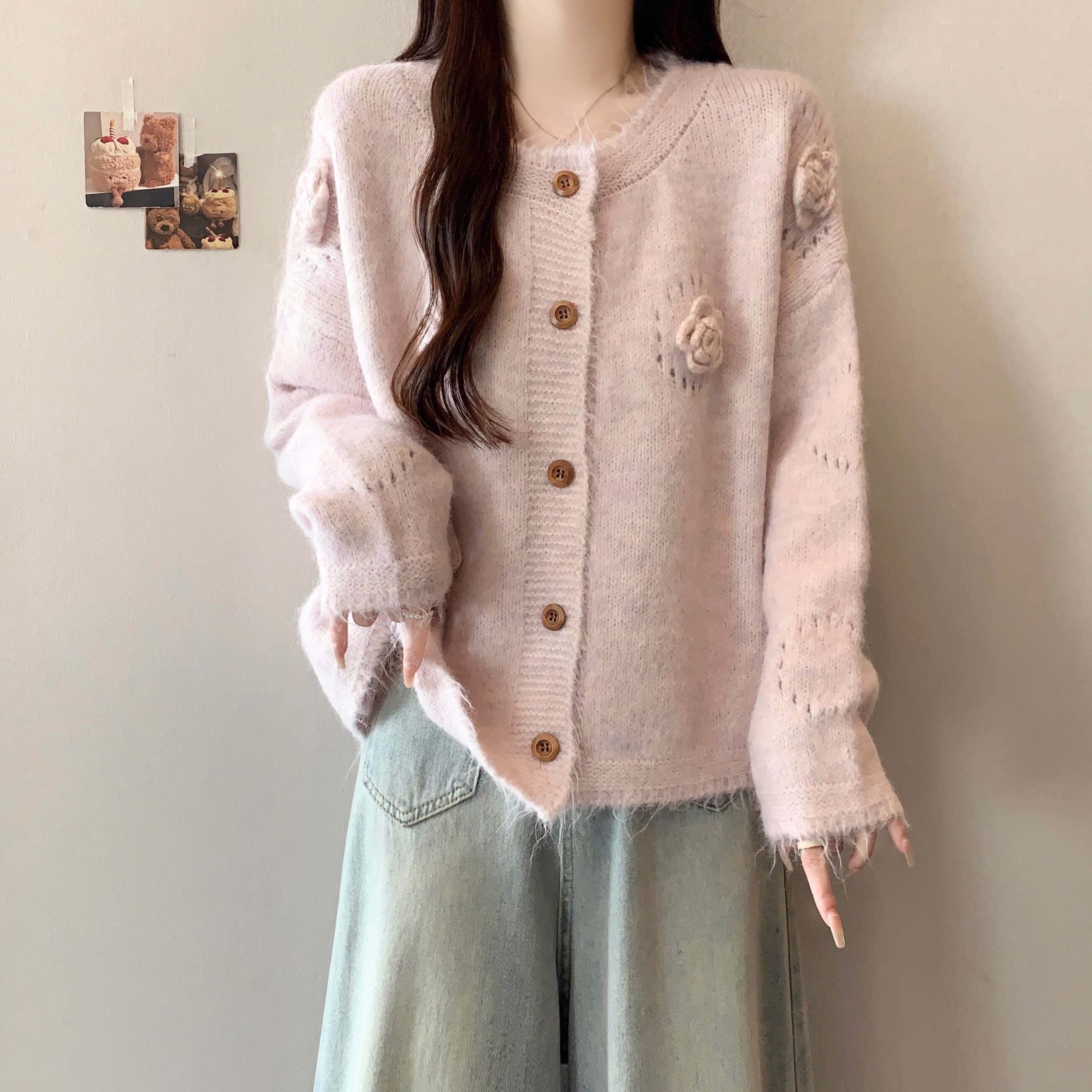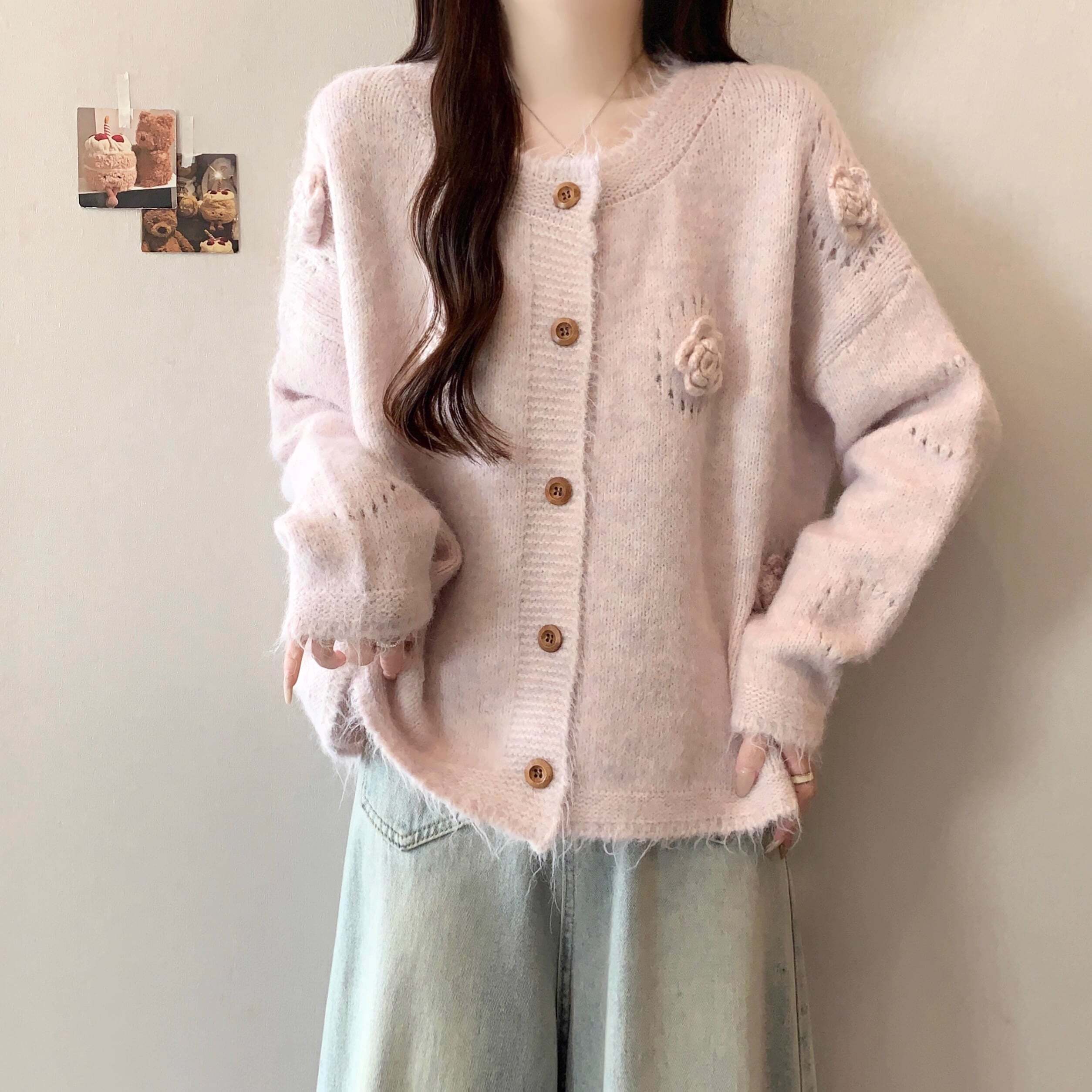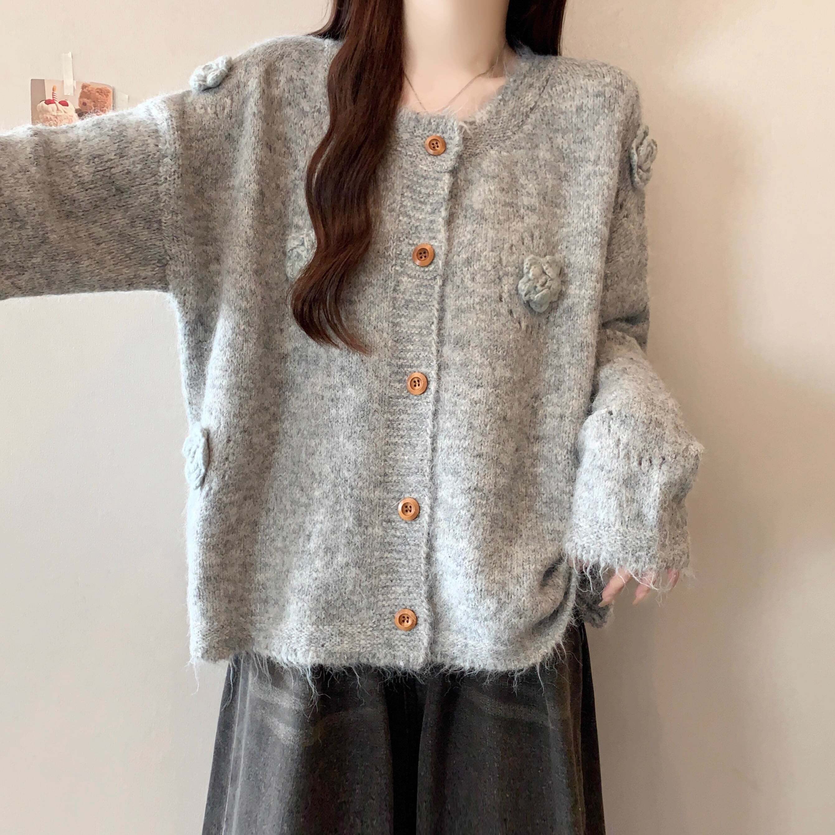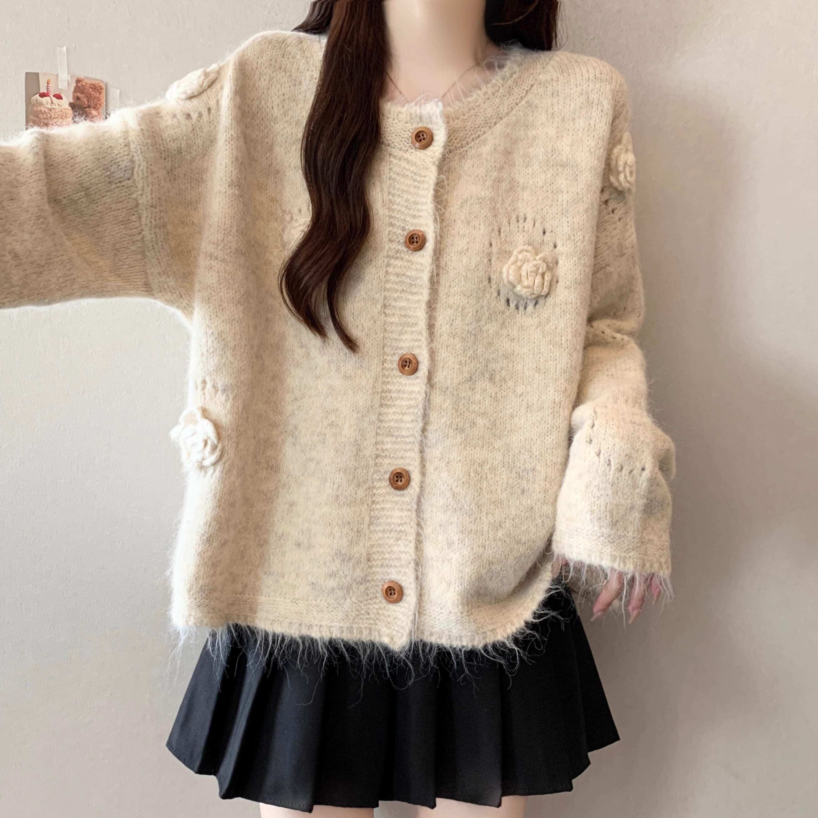 フラワーモチーフニットカーディガン
