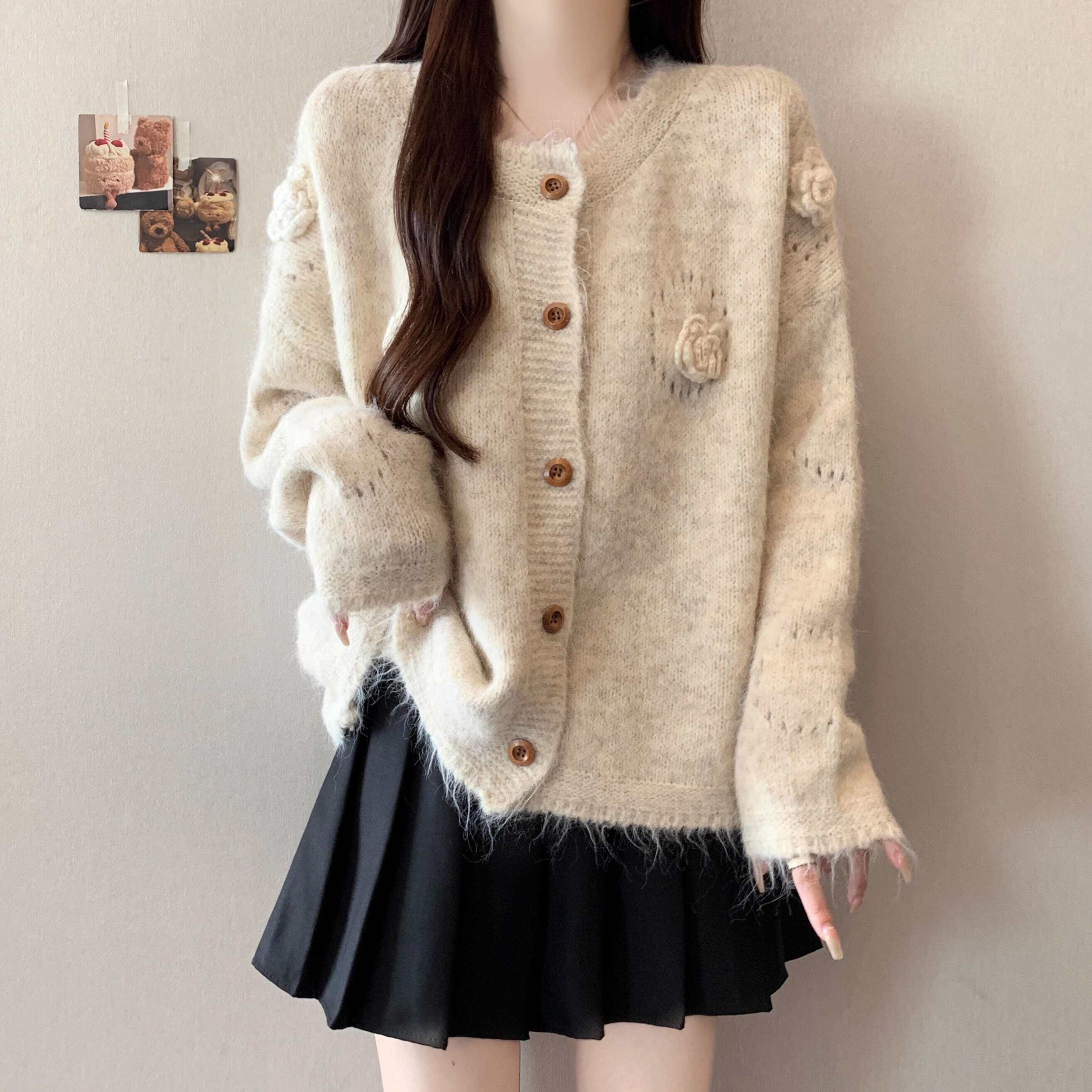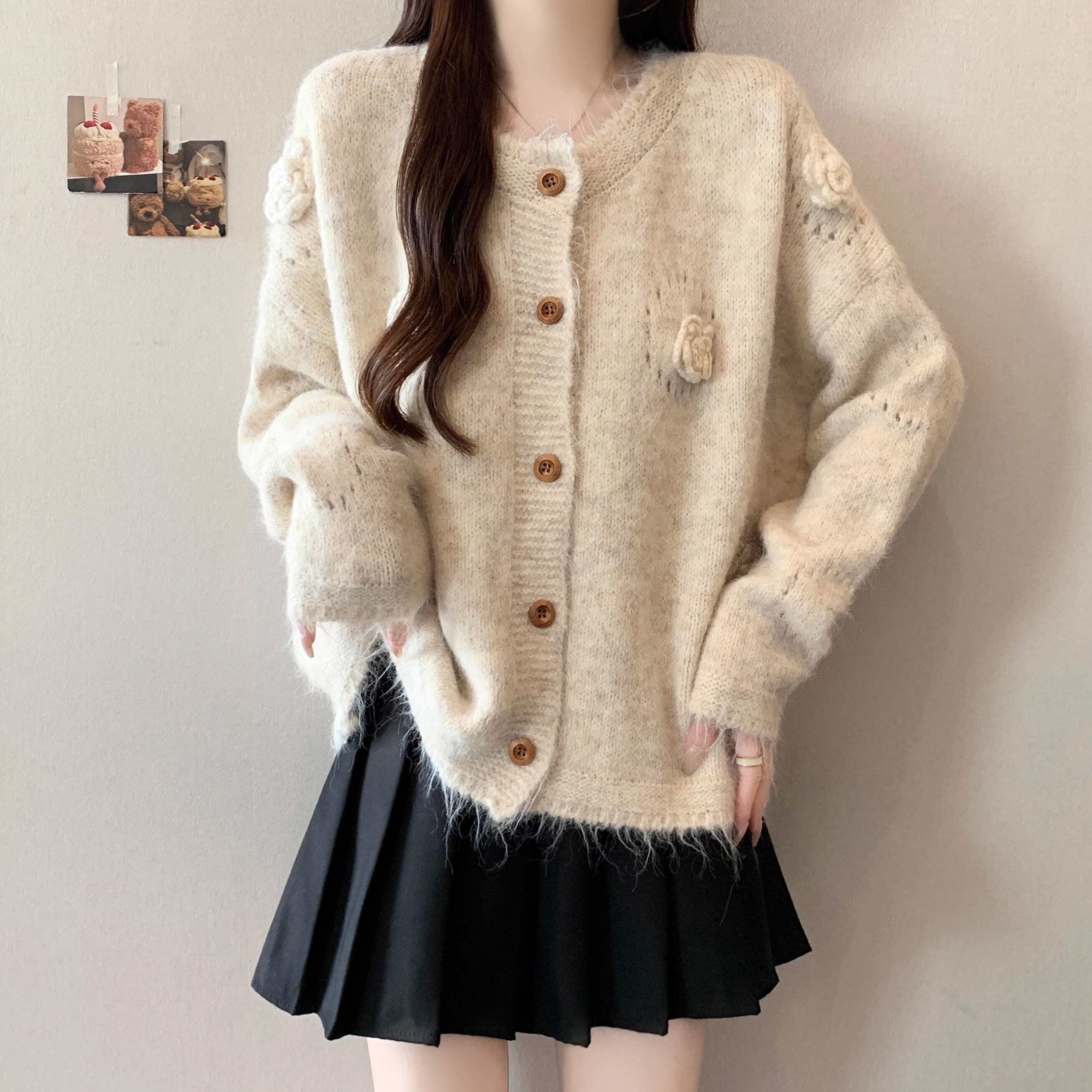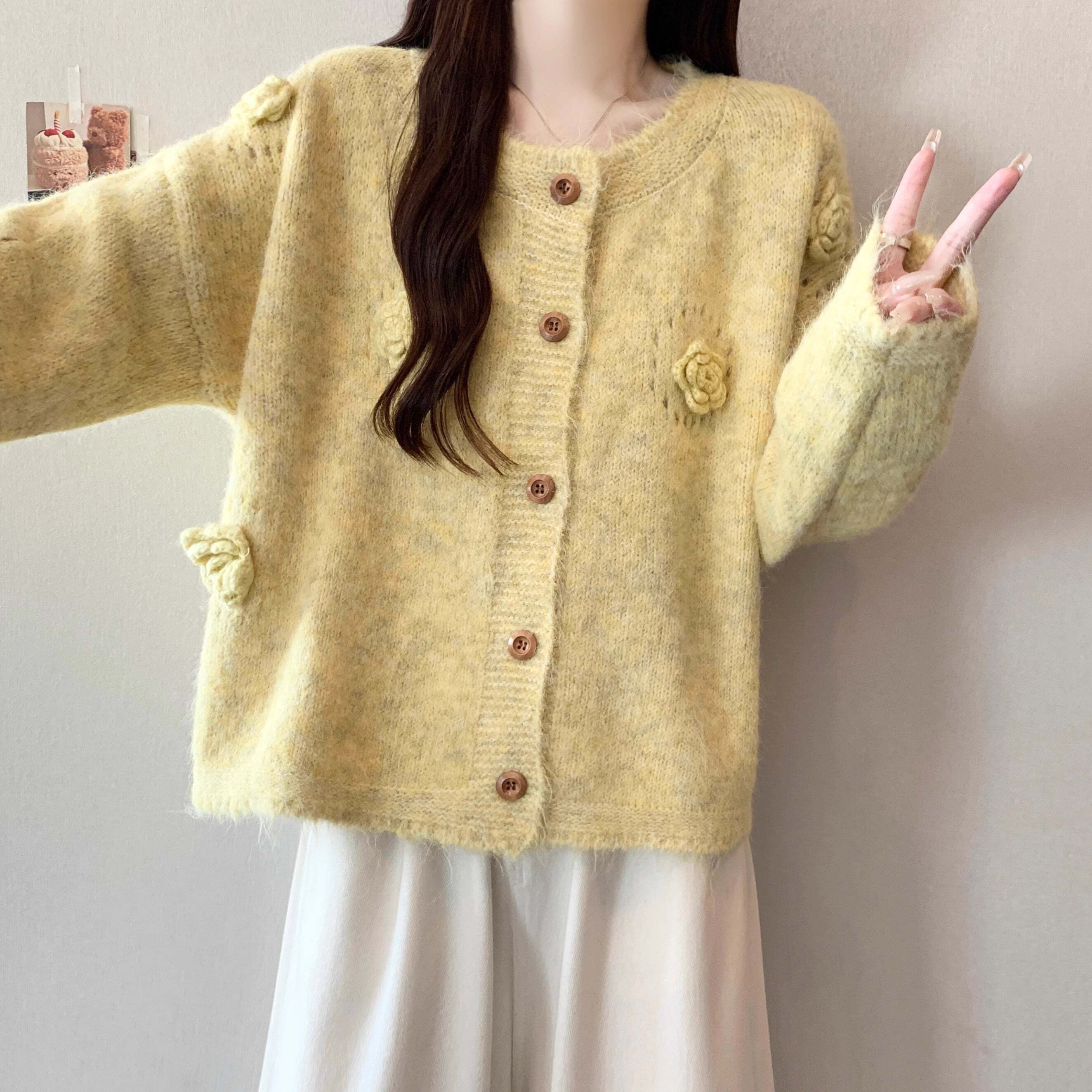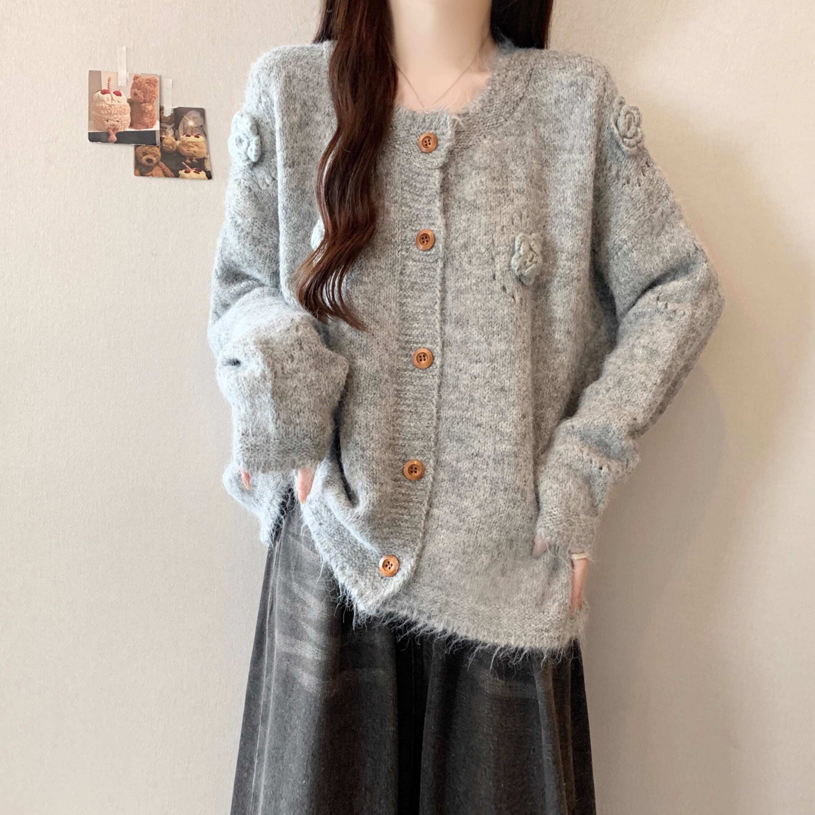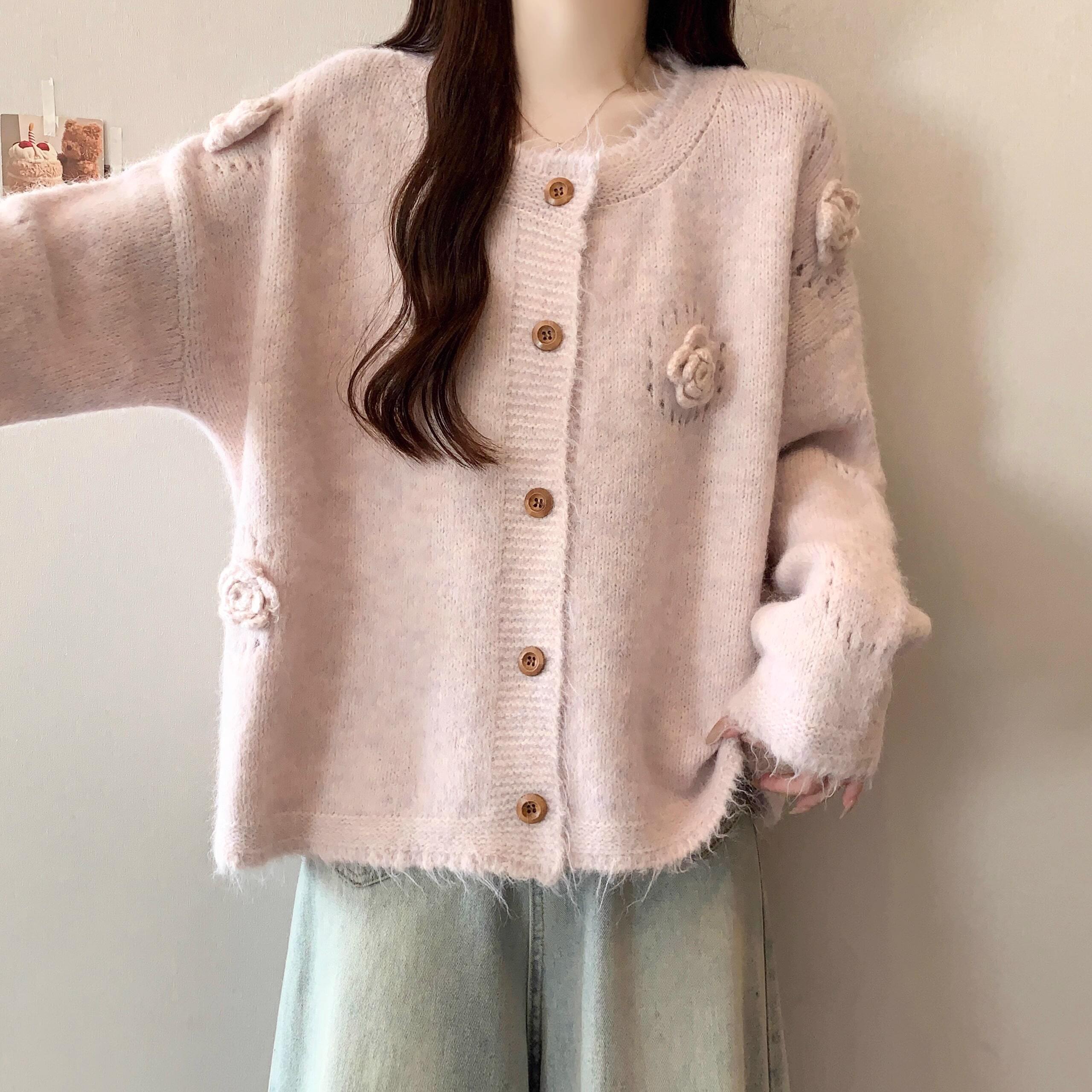 フラワーモチーフニットカーディガン