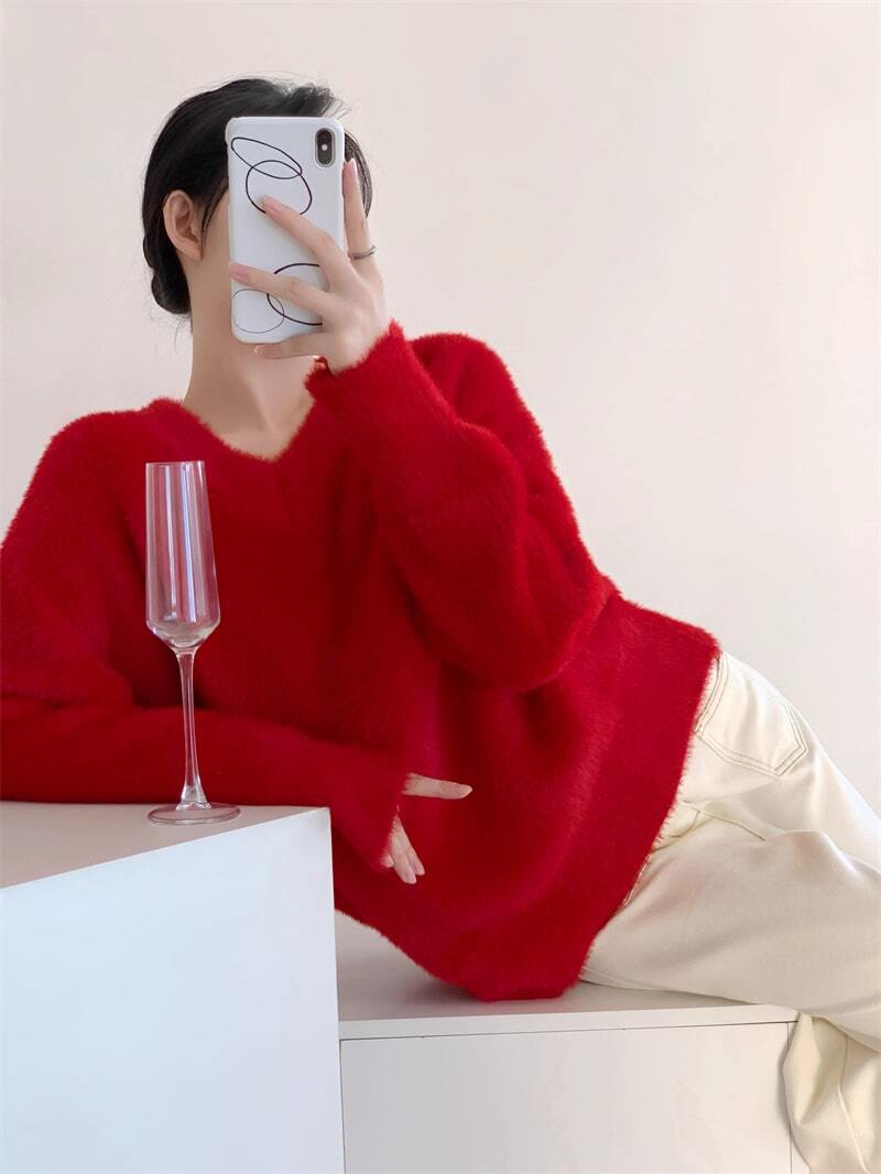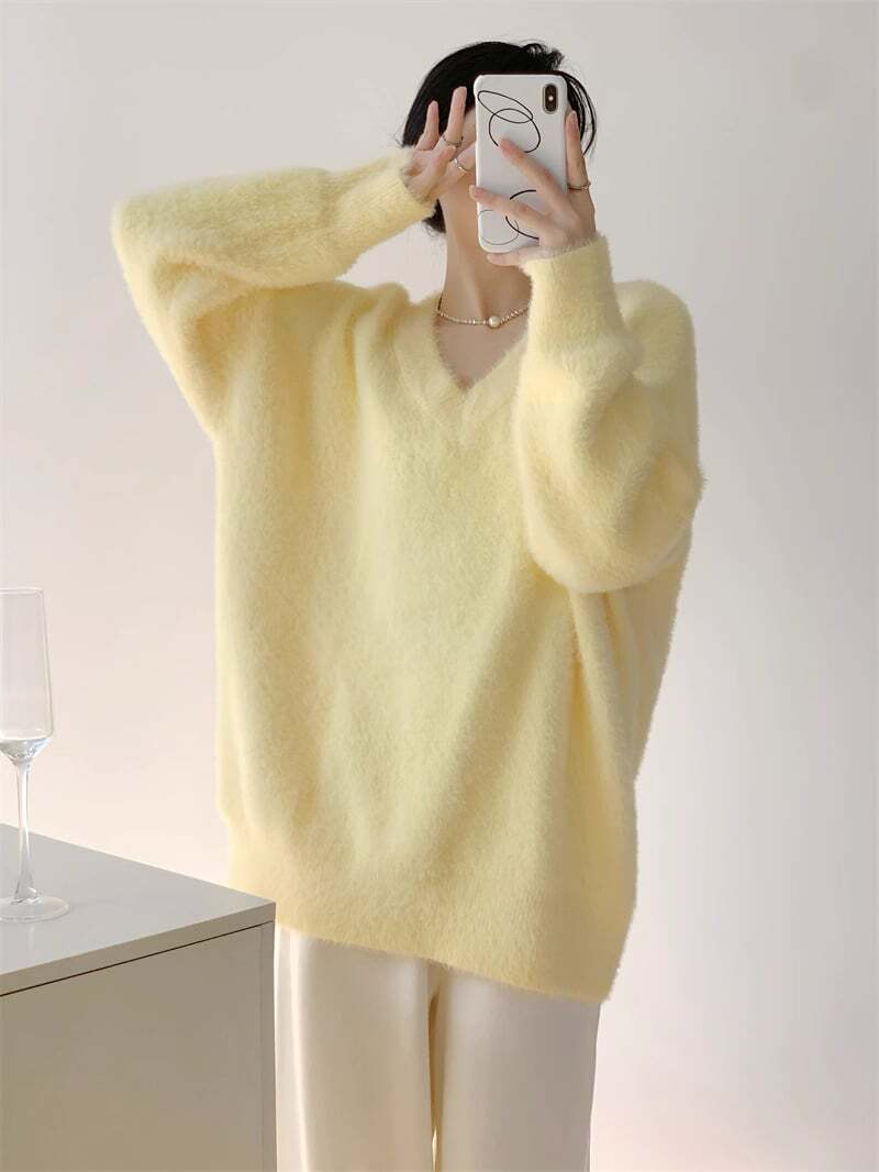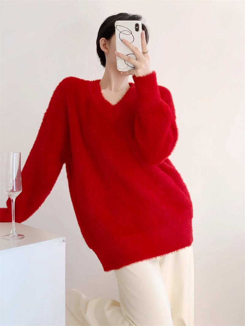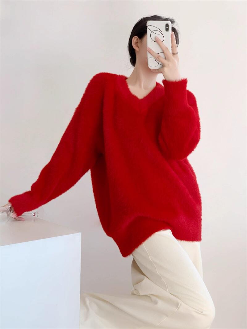 Vネックふわふわセーター
