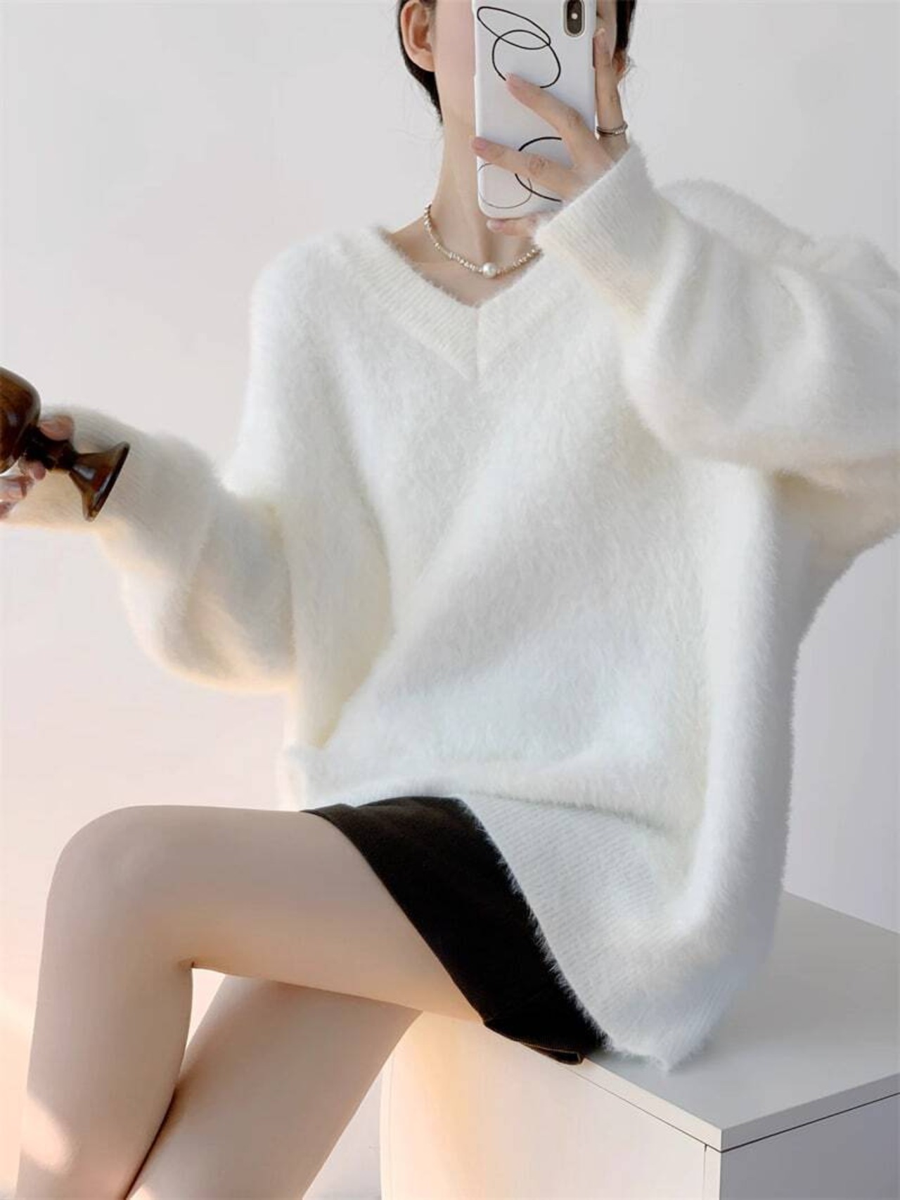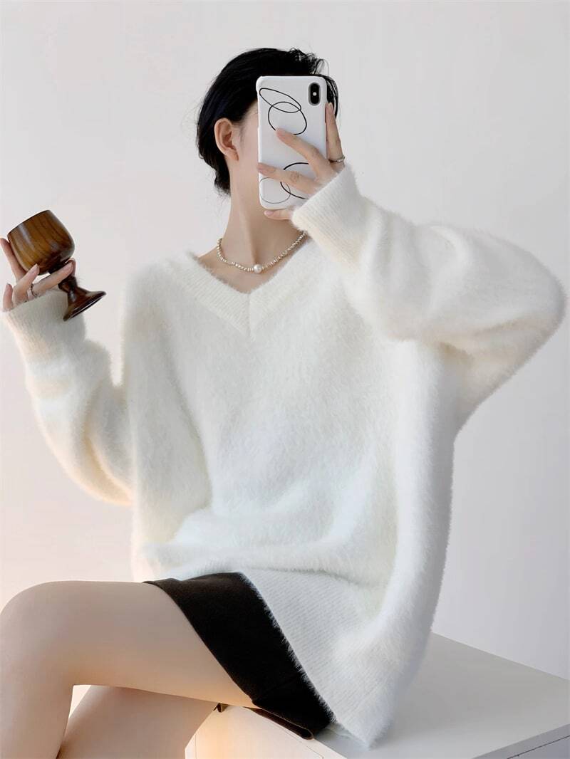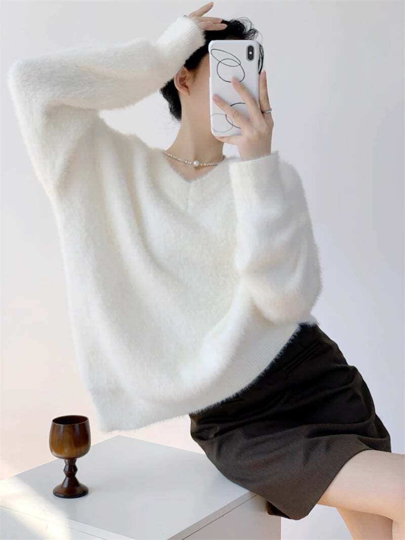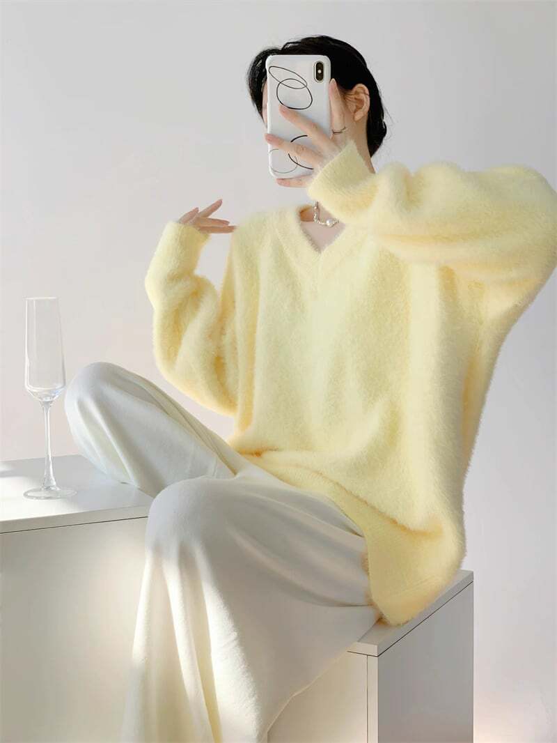 Vネックふわふわセーター