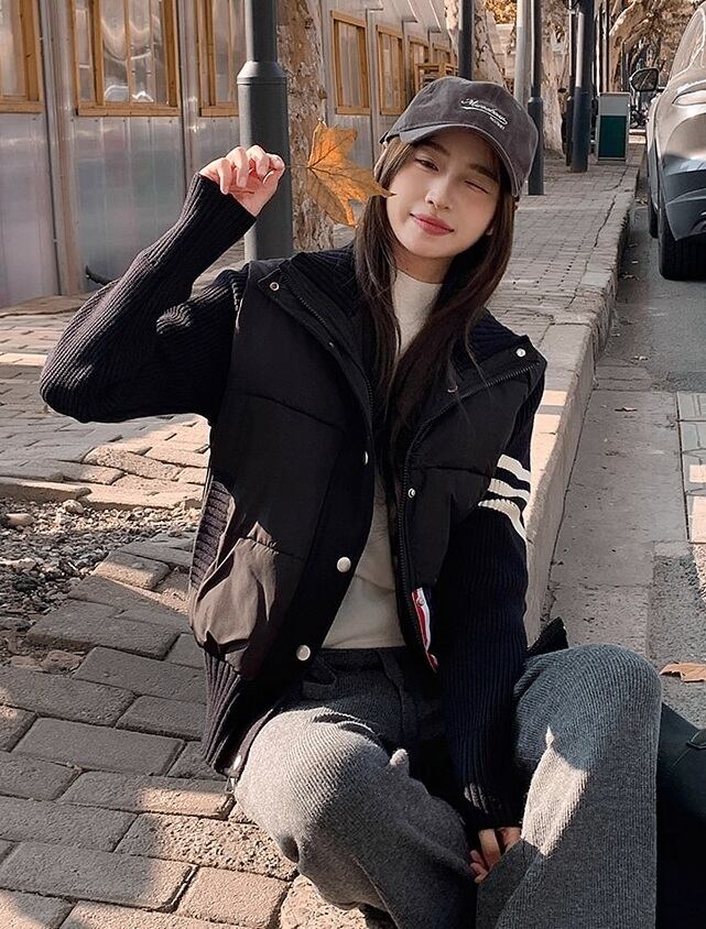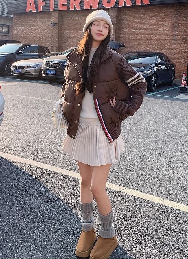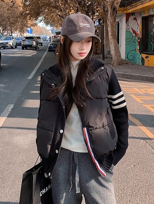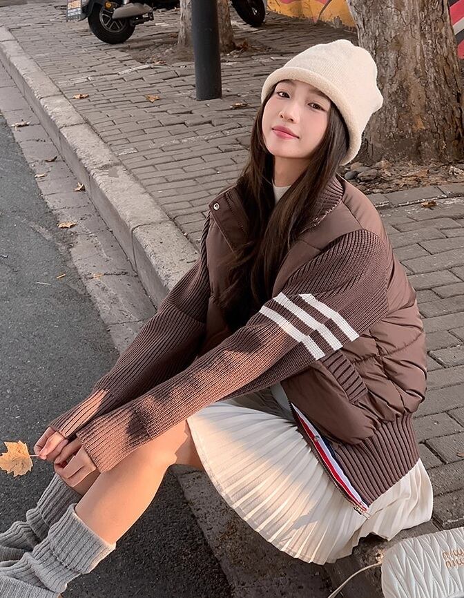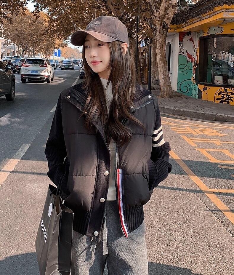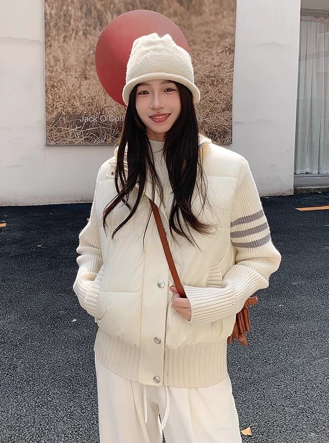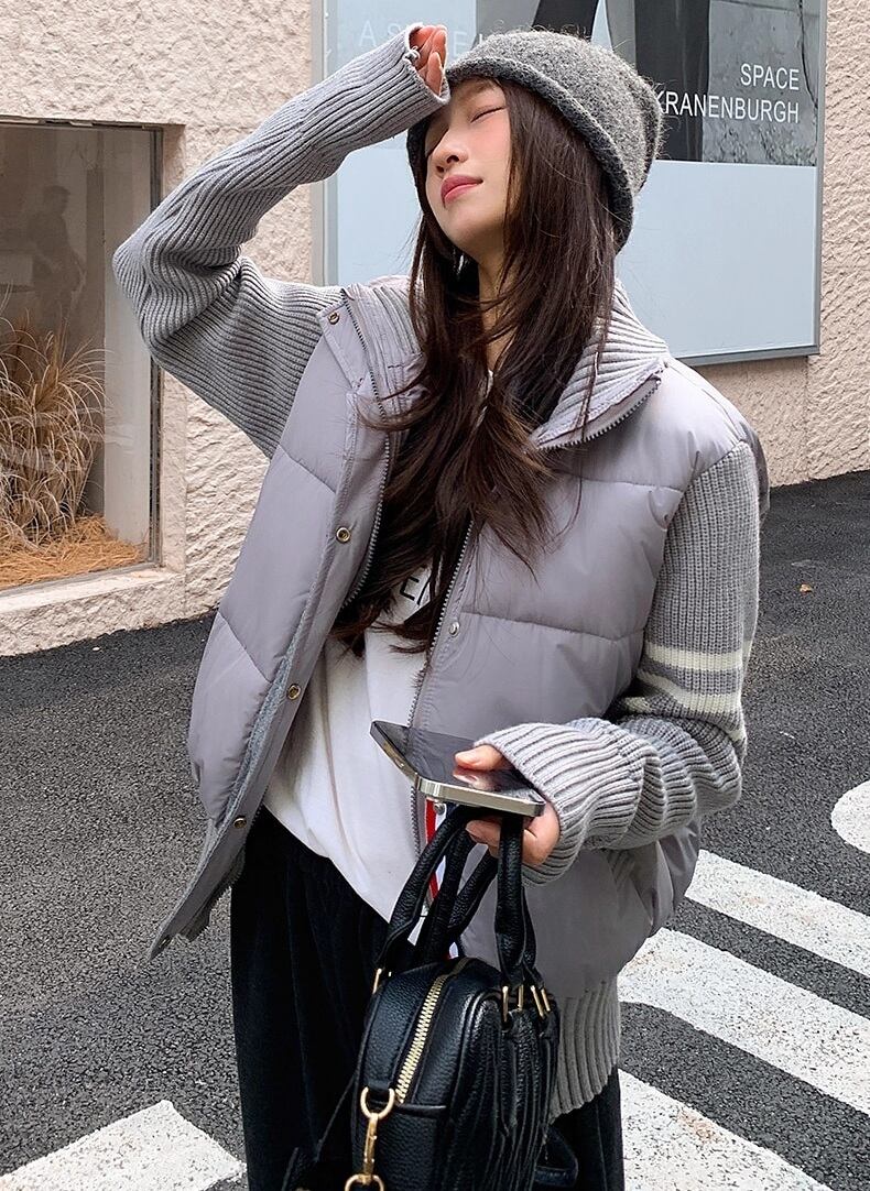 【低身長さんに】ニットスリーブ ダウンジャケット
