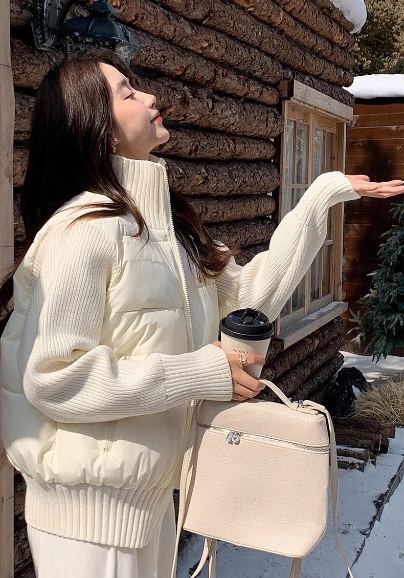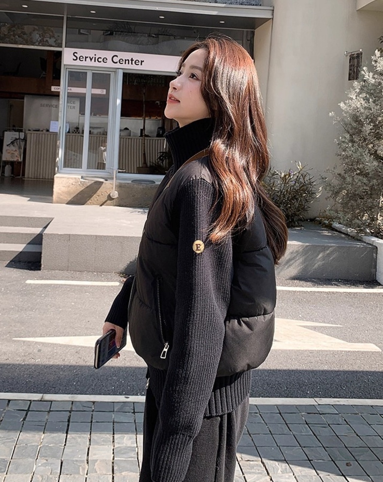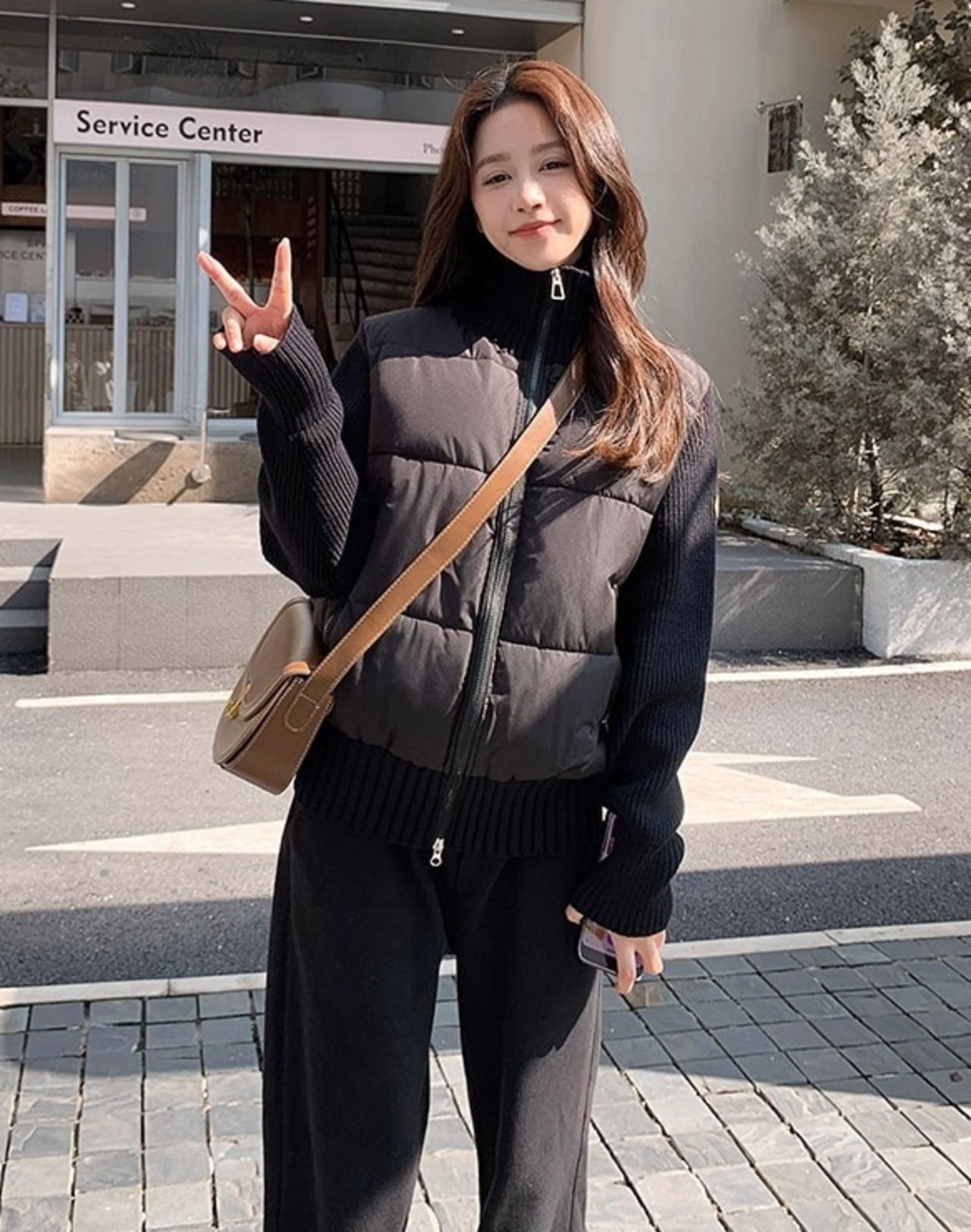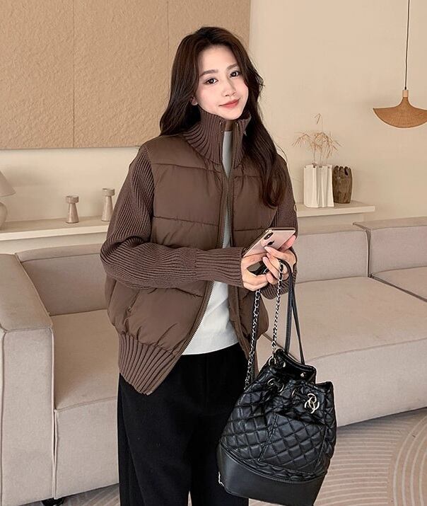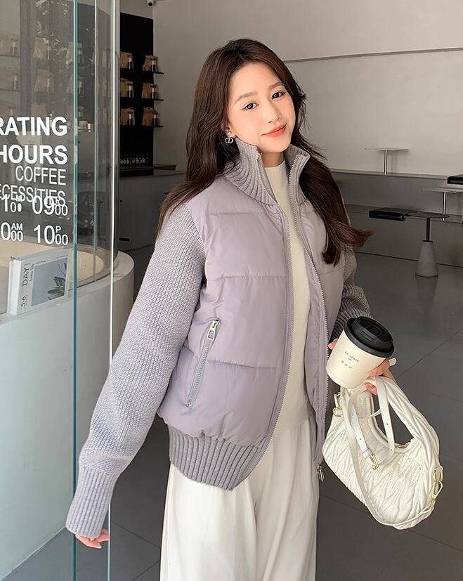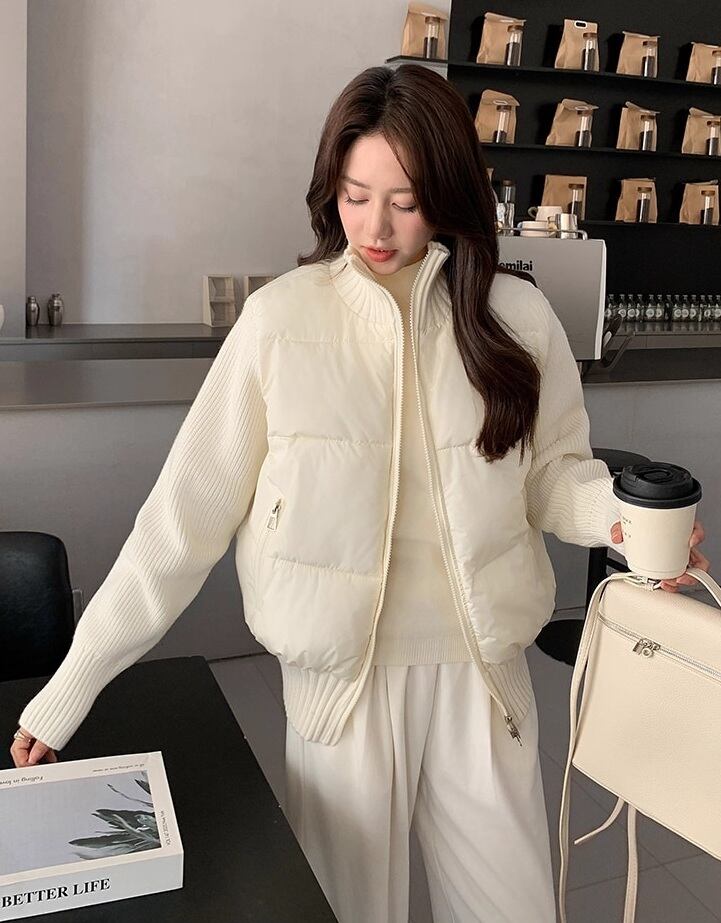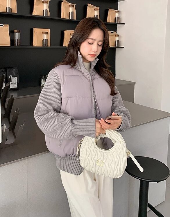 【低身長さんに】ニットスリーブキルティングダウンジャケット