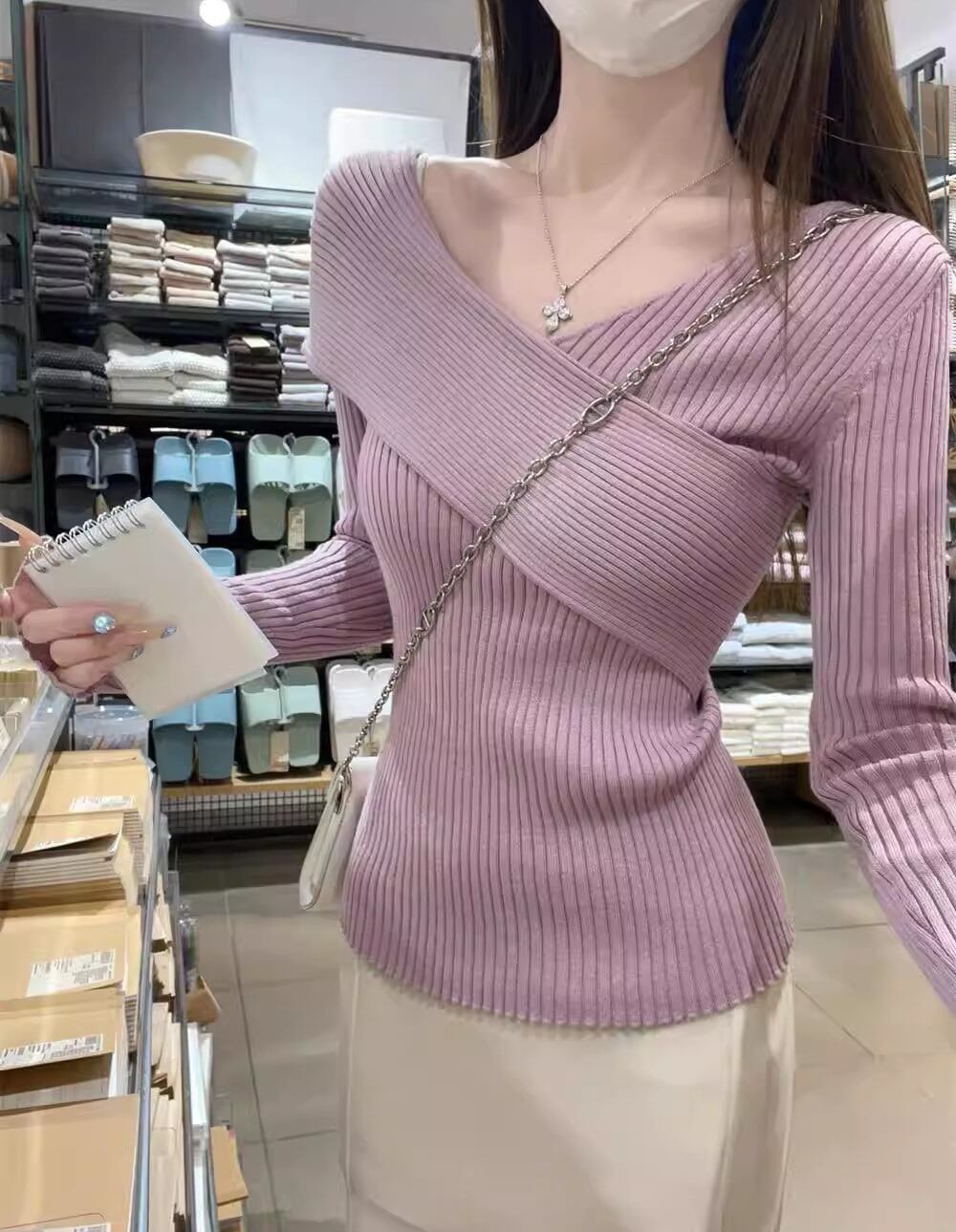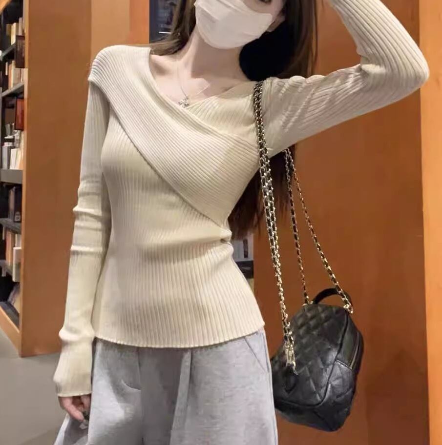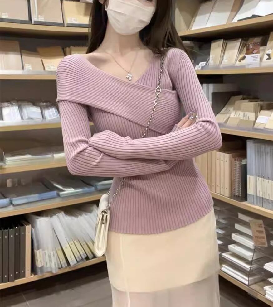 アシンメトリーリブニットトップ