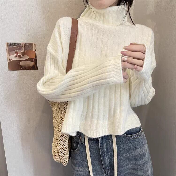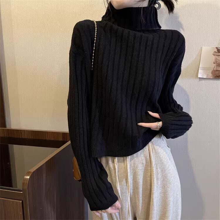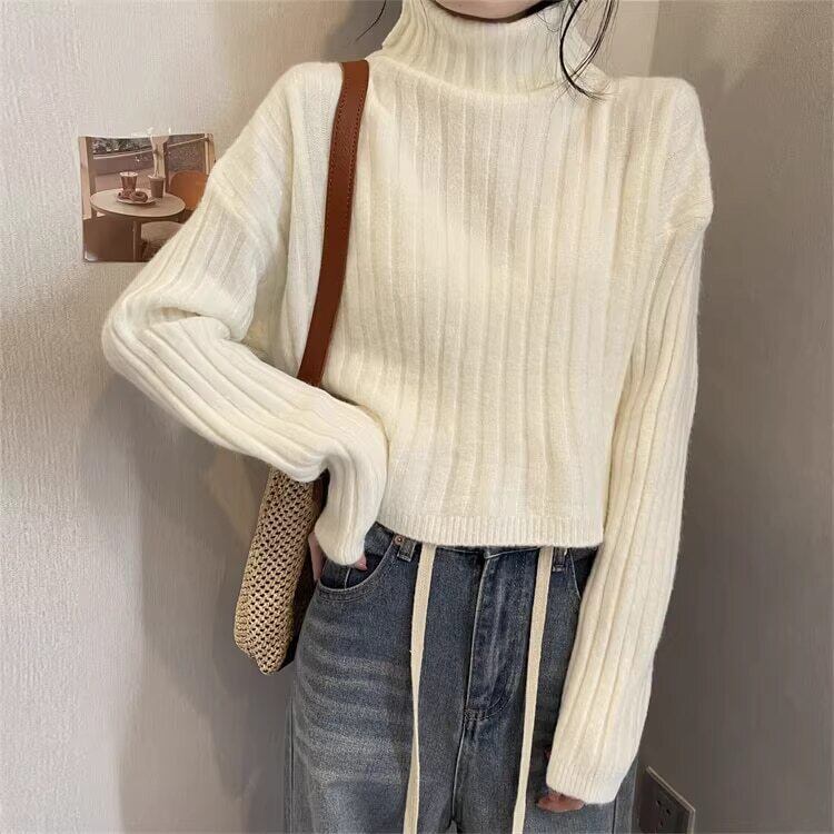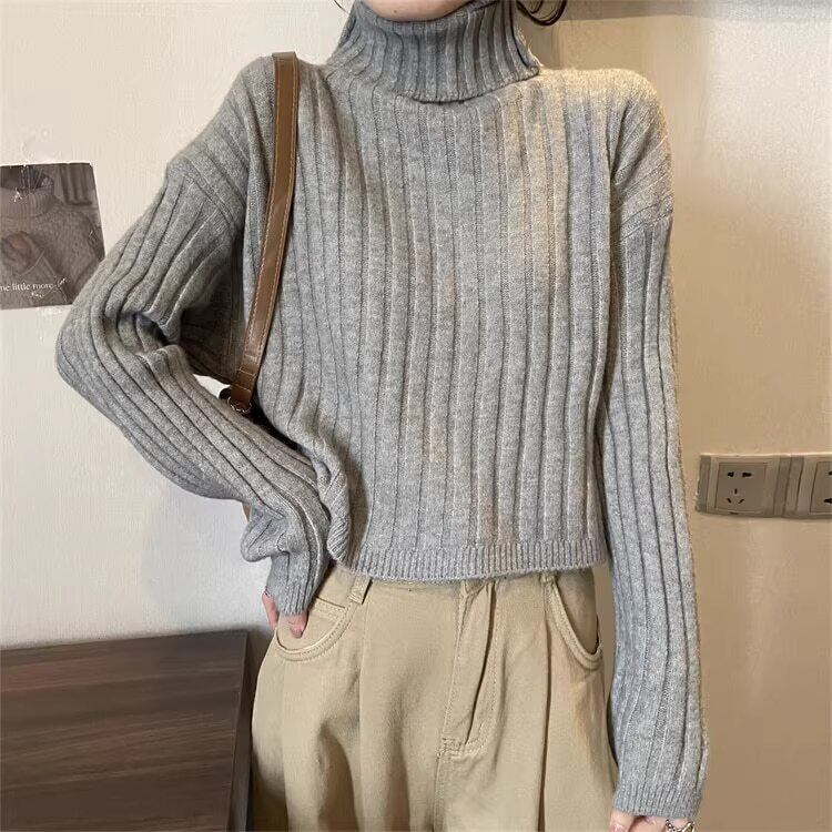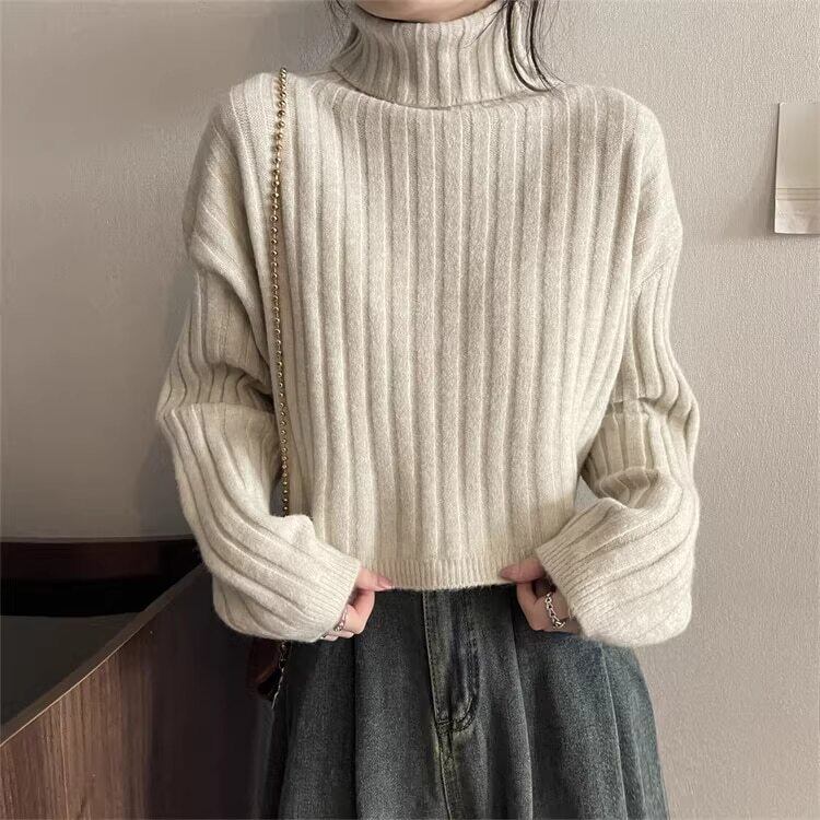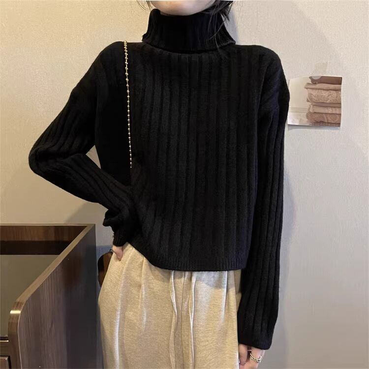クロップド丈 タートルネックリブニット