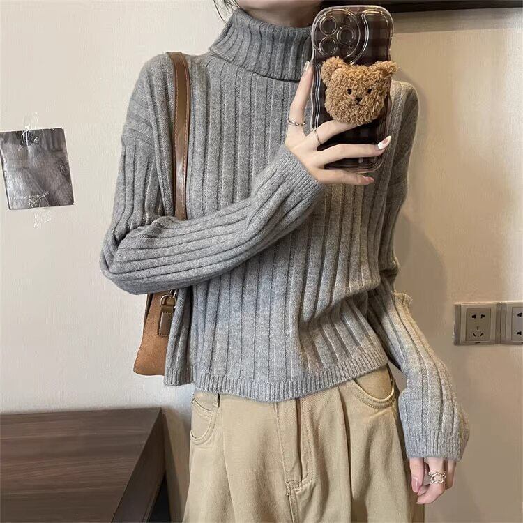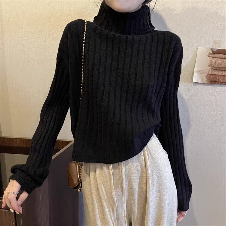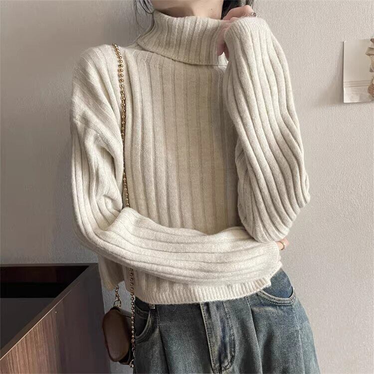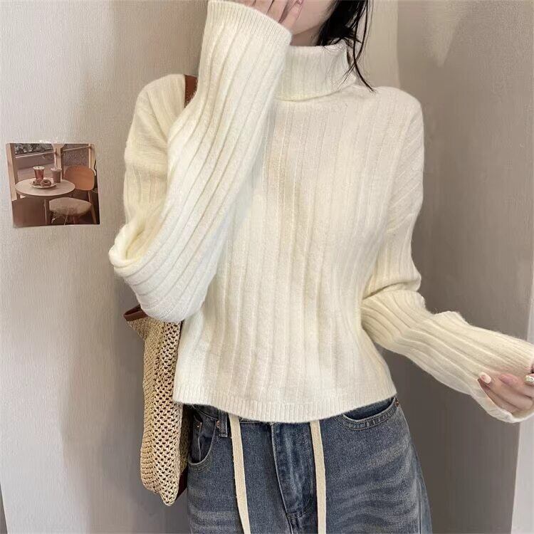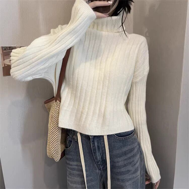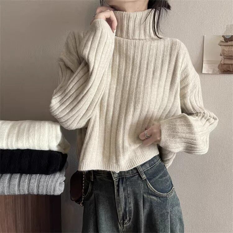 クロップド丈 タートルネックリブニット