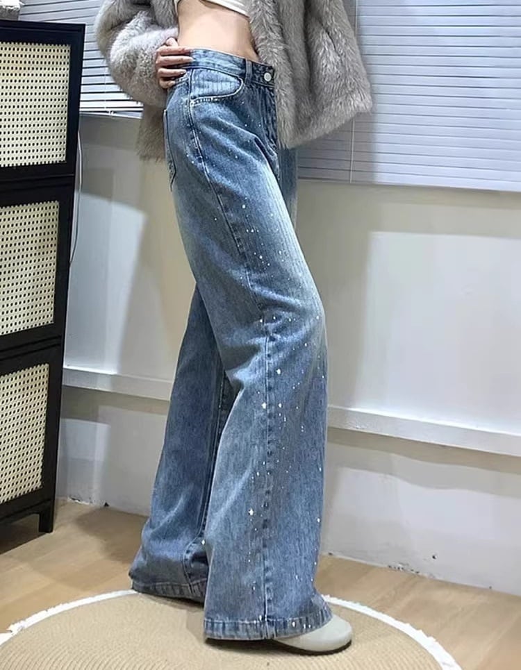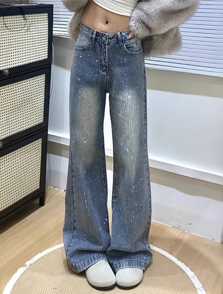 【低身長さんにも】キラキララインストーンデニムパンツ