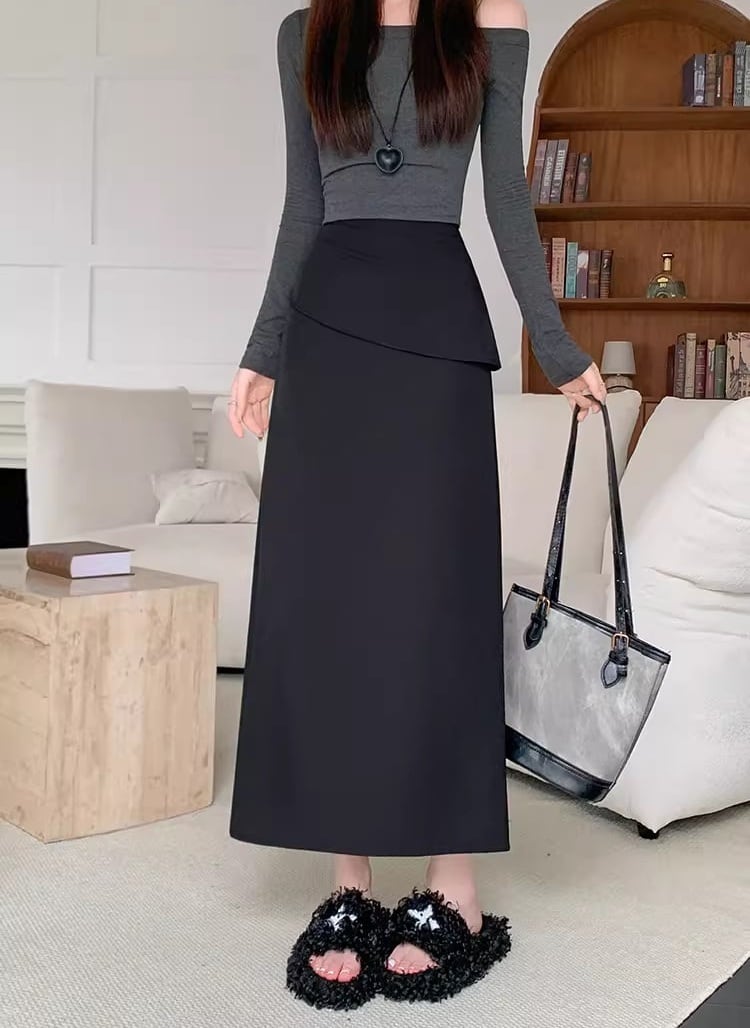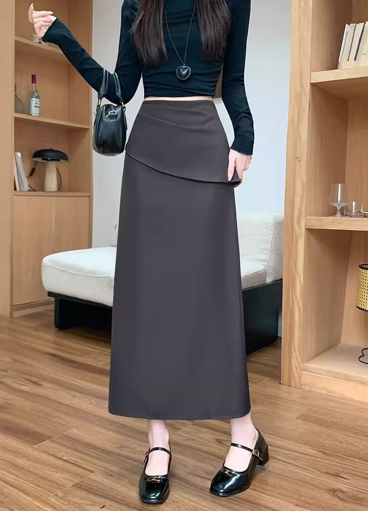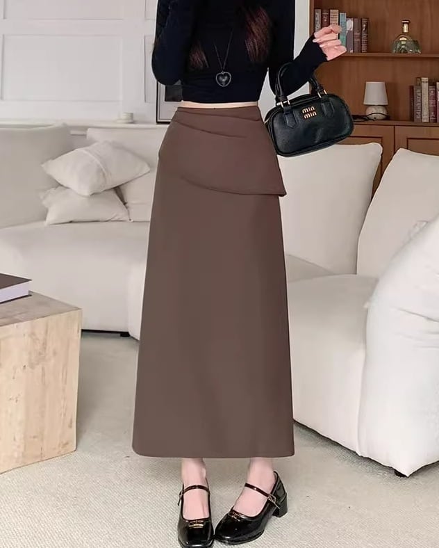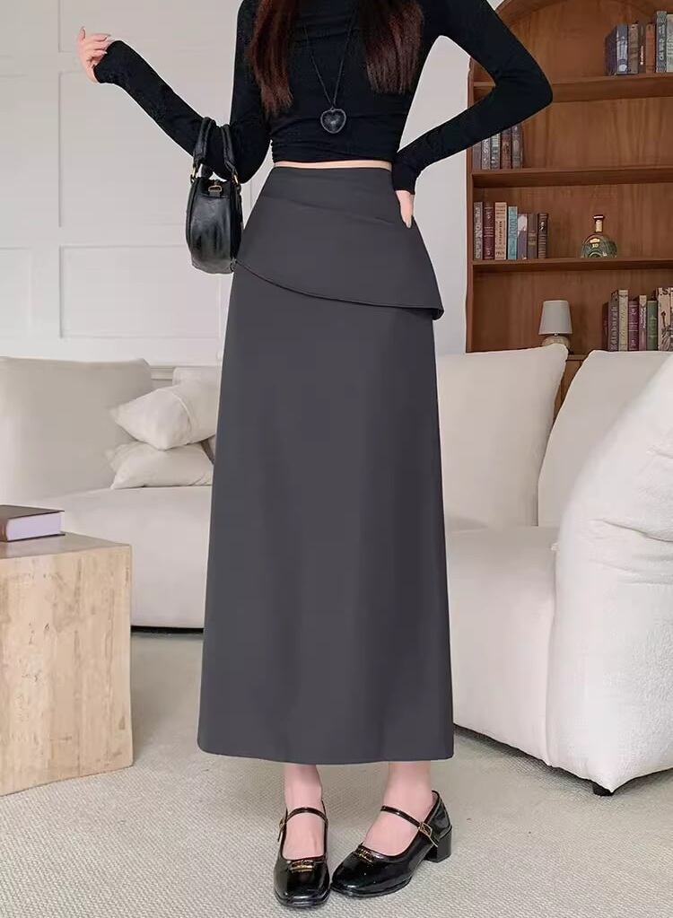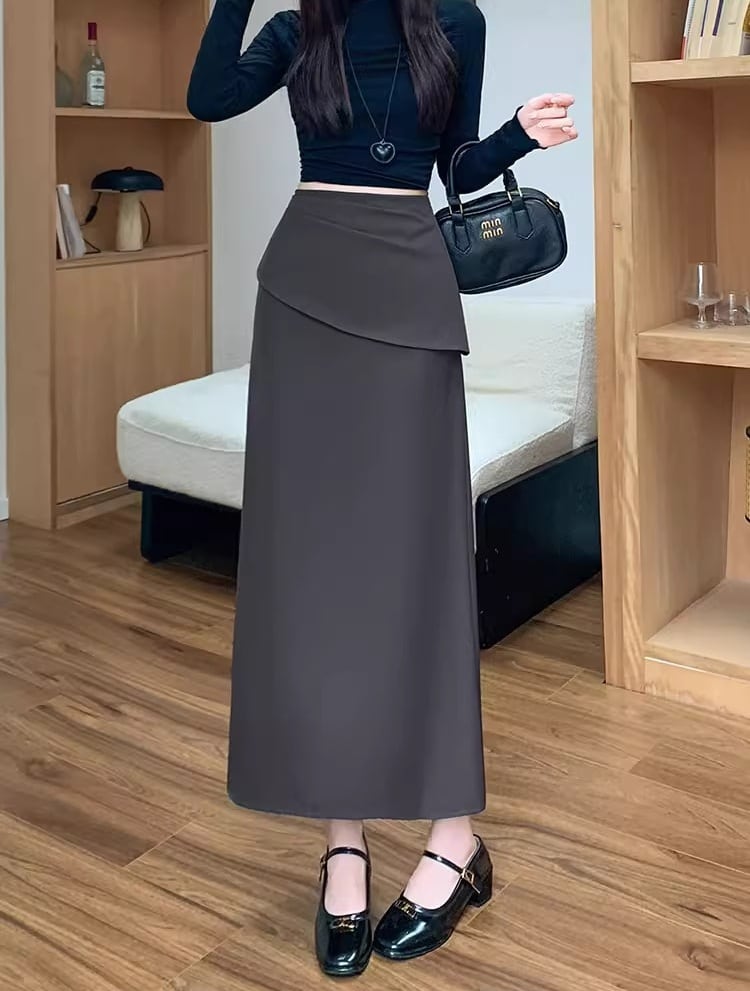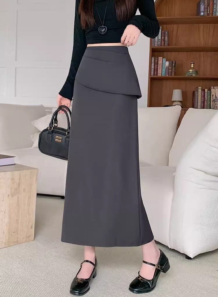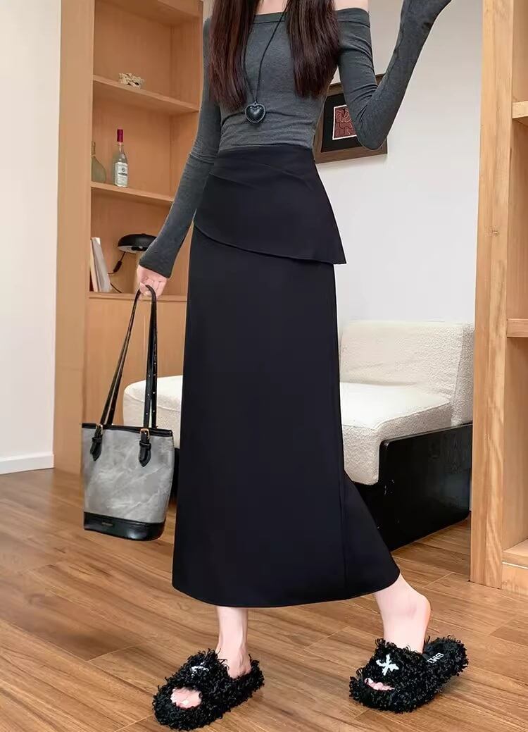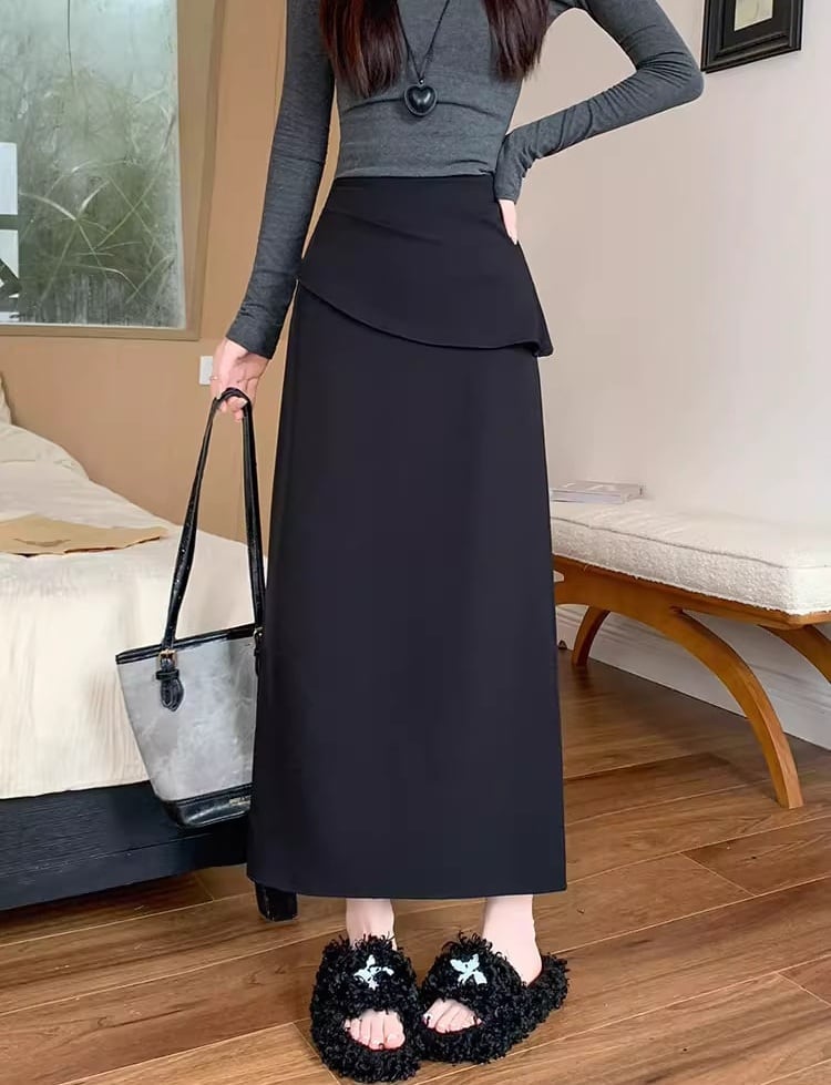 【低身長さんに】バックスリットフリルロングスカート