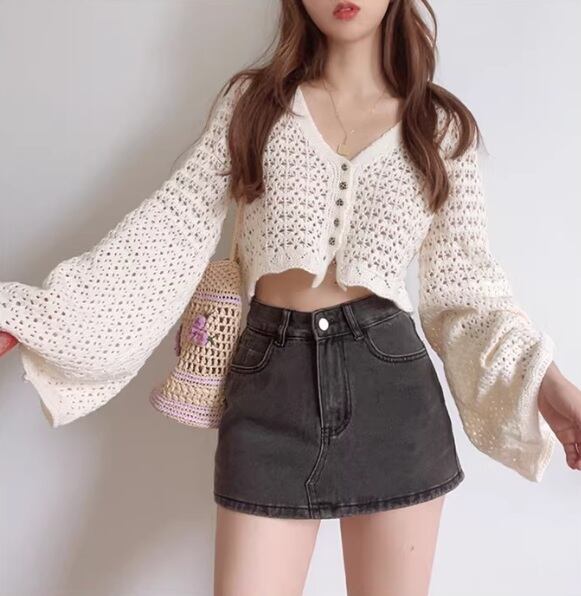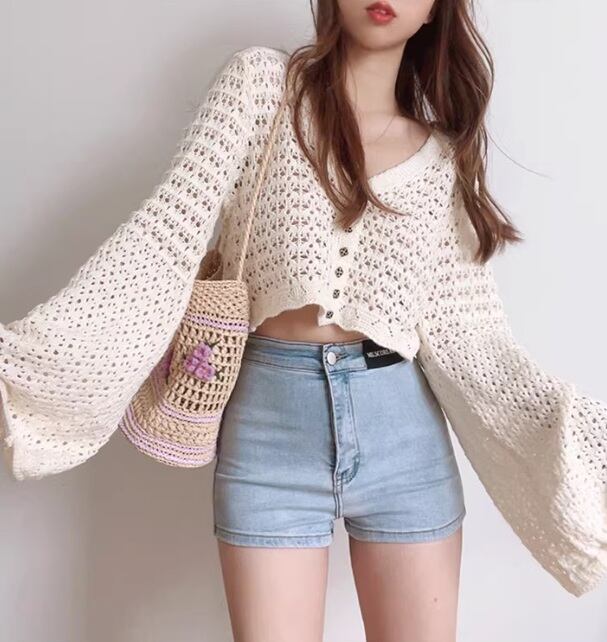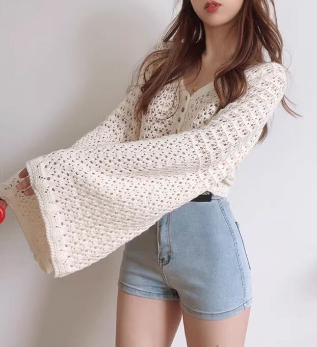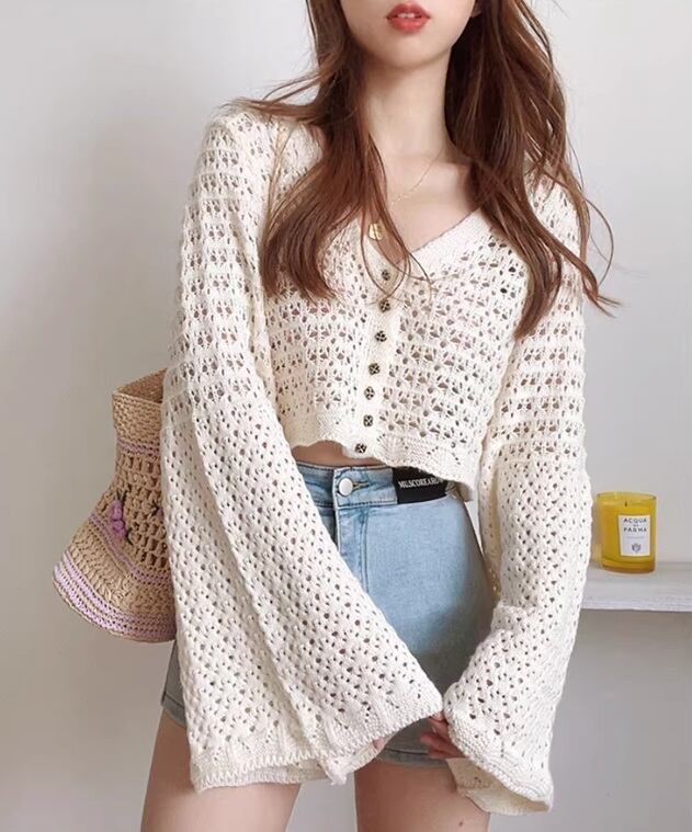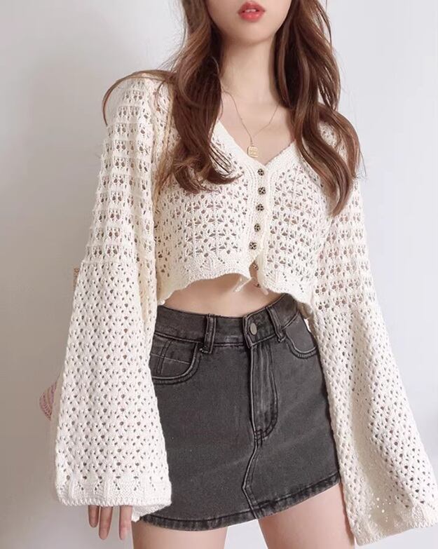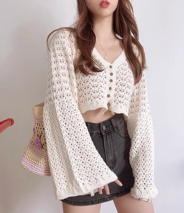 透かし編みニットカーディガン