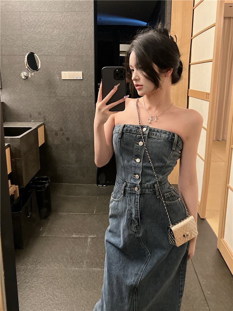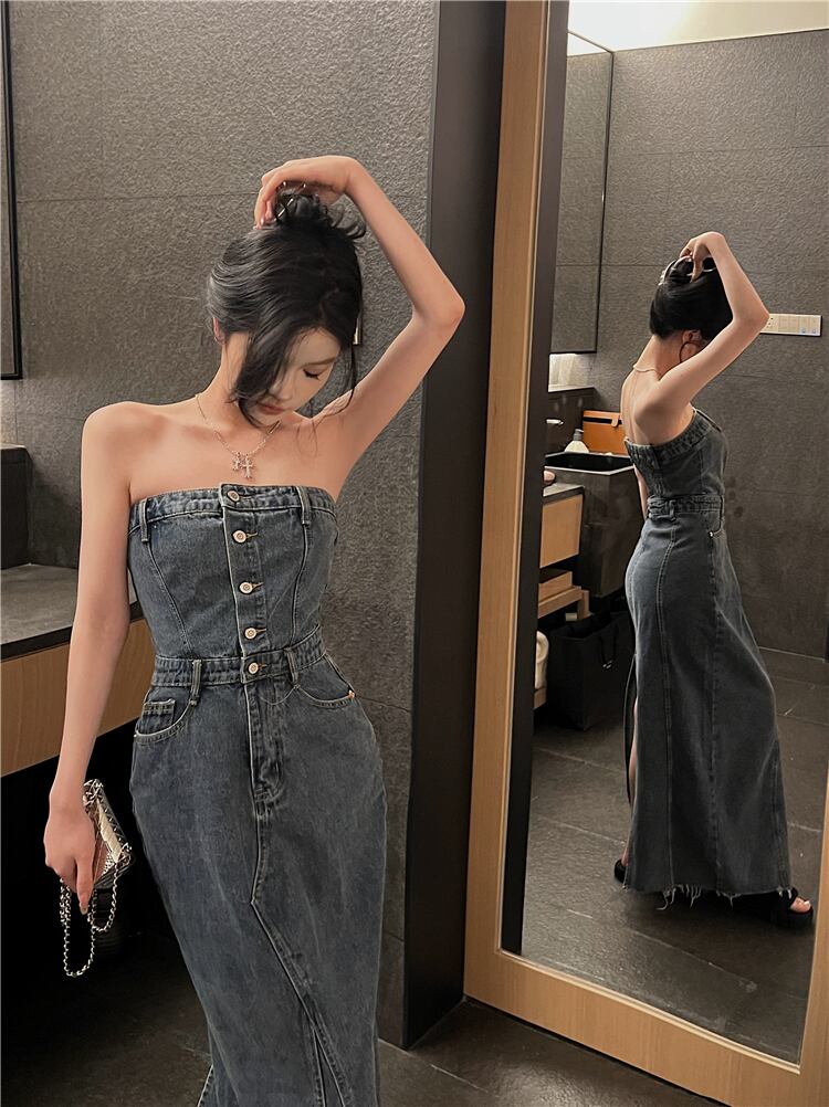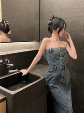 個性派スタイルを目指す方には是非着てほしい、デニムドレスです。