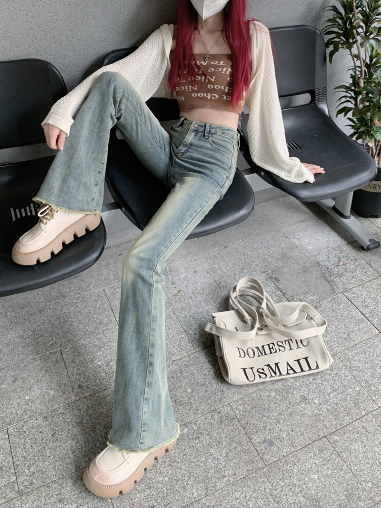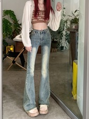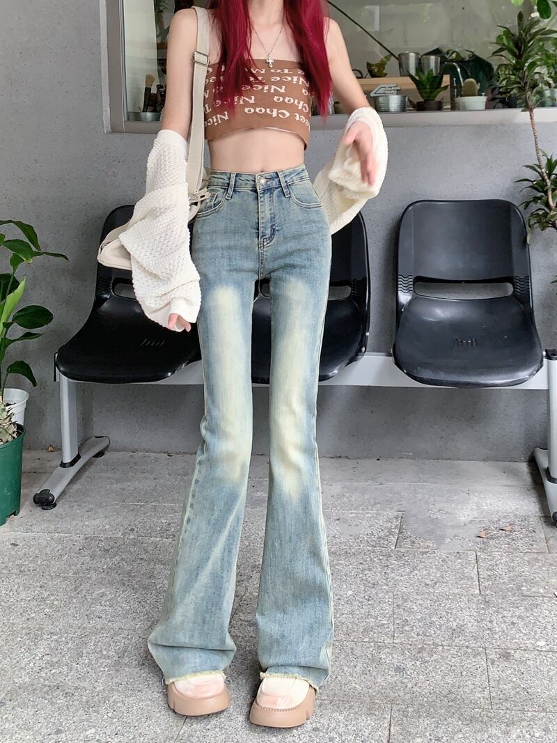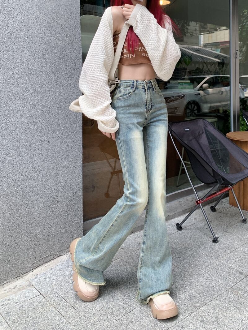 ハイウエスト ハイウォッシュ フレアデニムパンツ