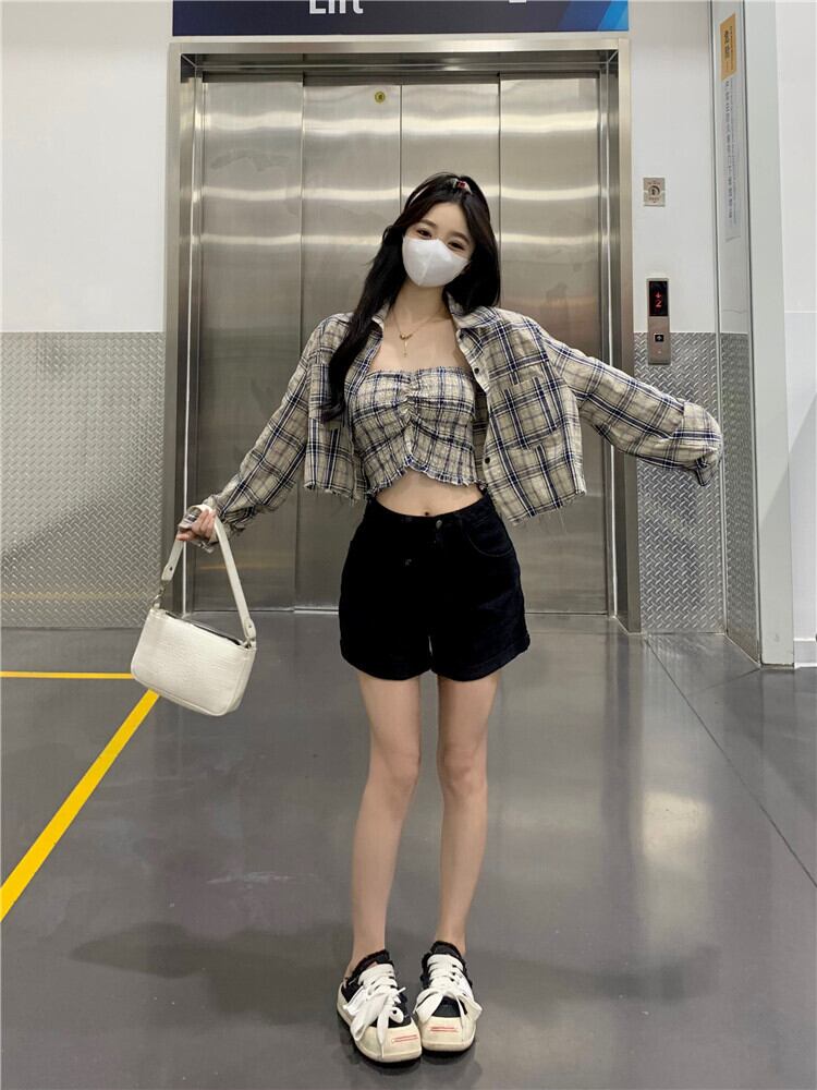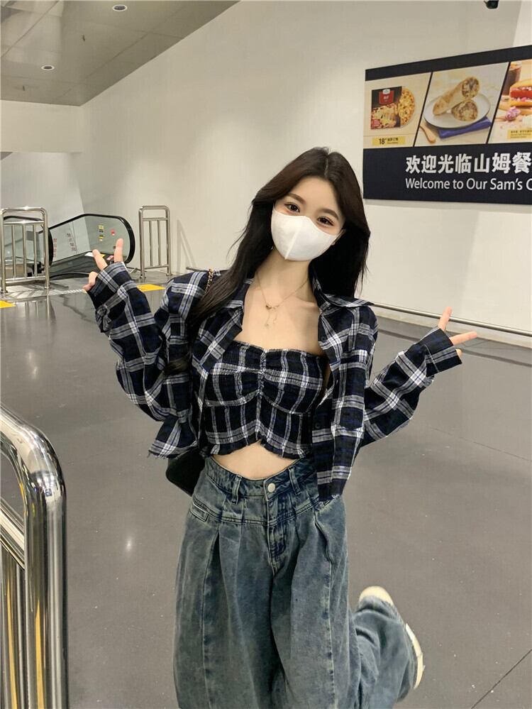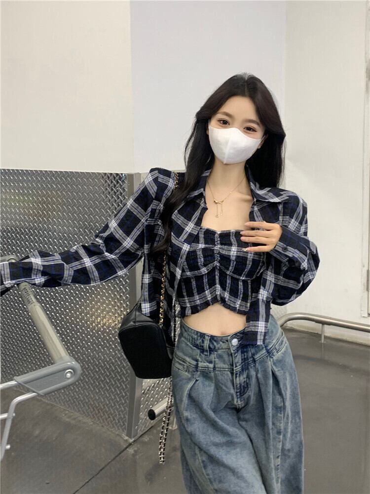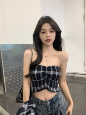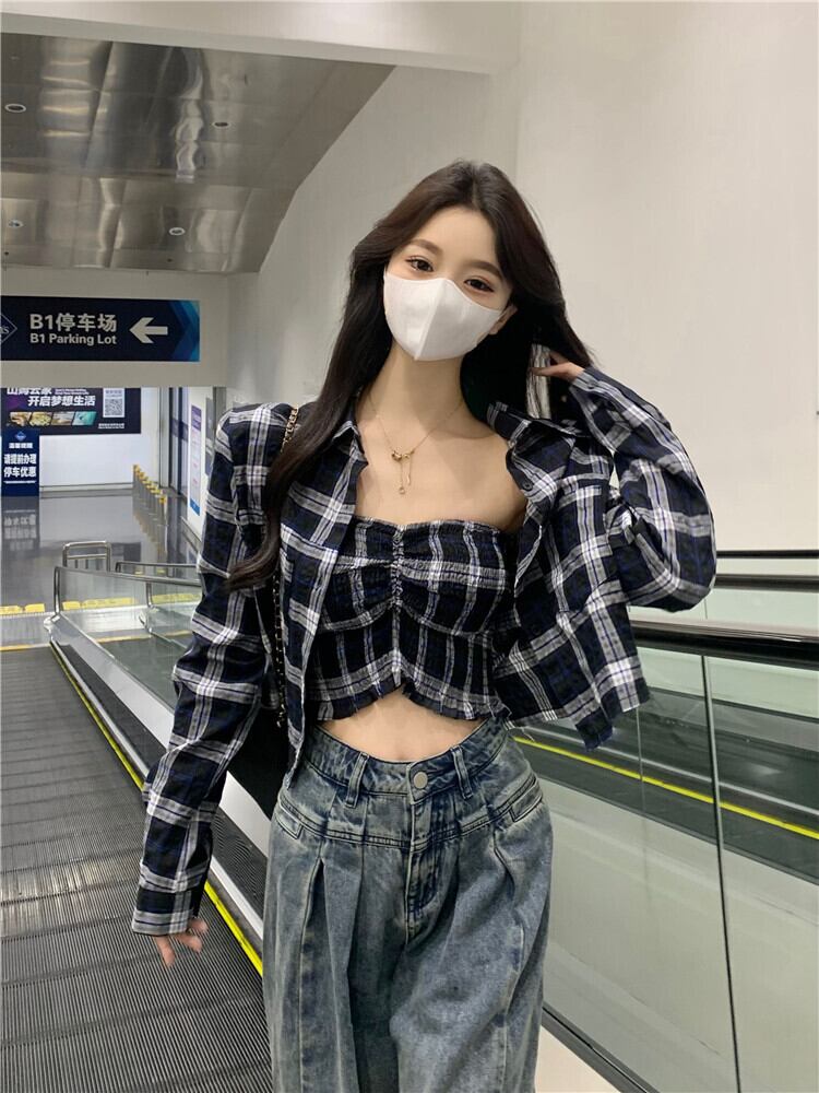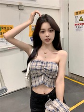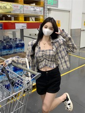 甘い印象のチェック柄が魅力的な長袖シャツ。チューブトップのデザインで女性らしさもプラスされています。韓国で人気のアイテムをご自宅で手軽にゲットできるのは嬉しいポイントです。