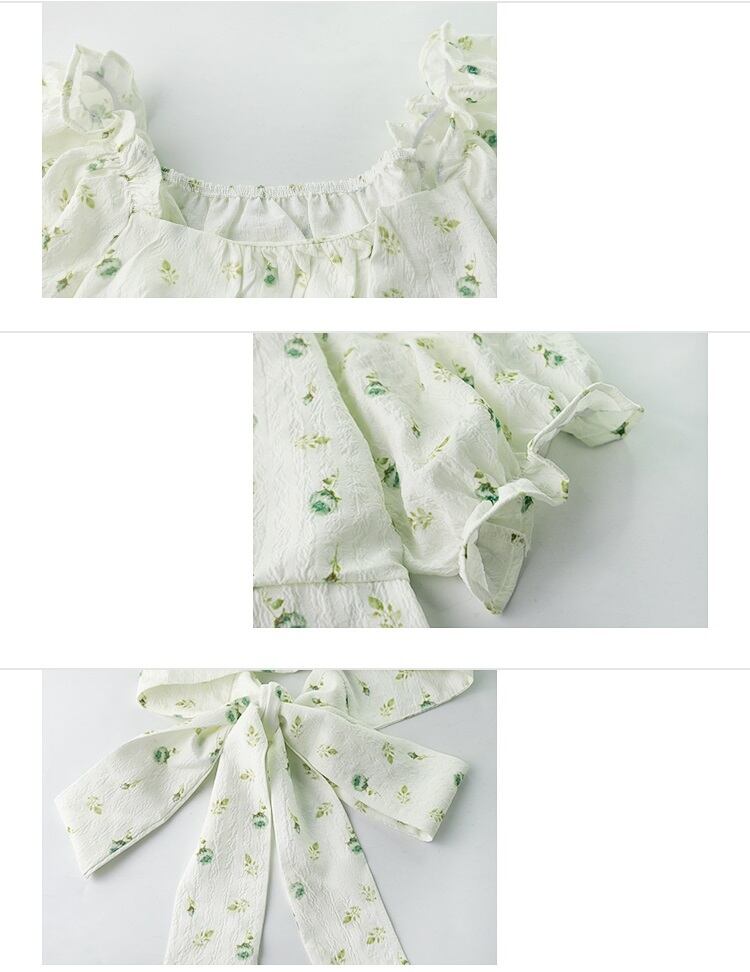 パフスリーブ バックリボン ショート丈 花柄 シャツ