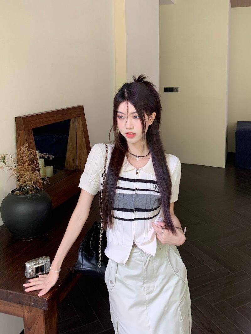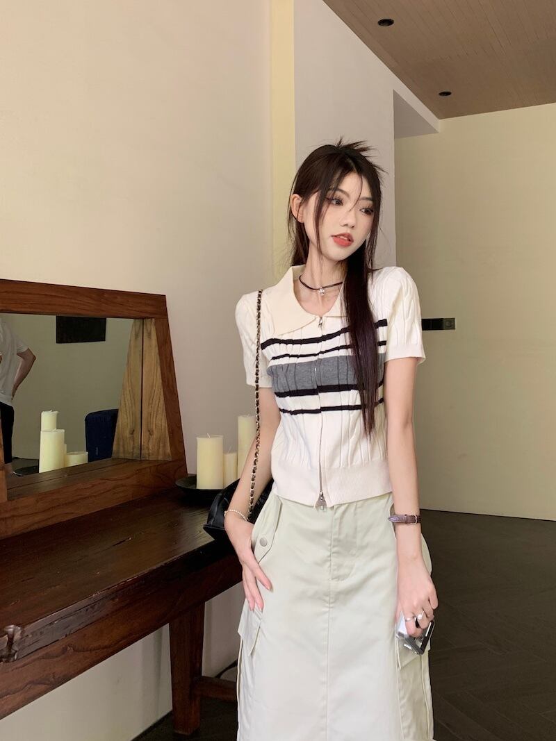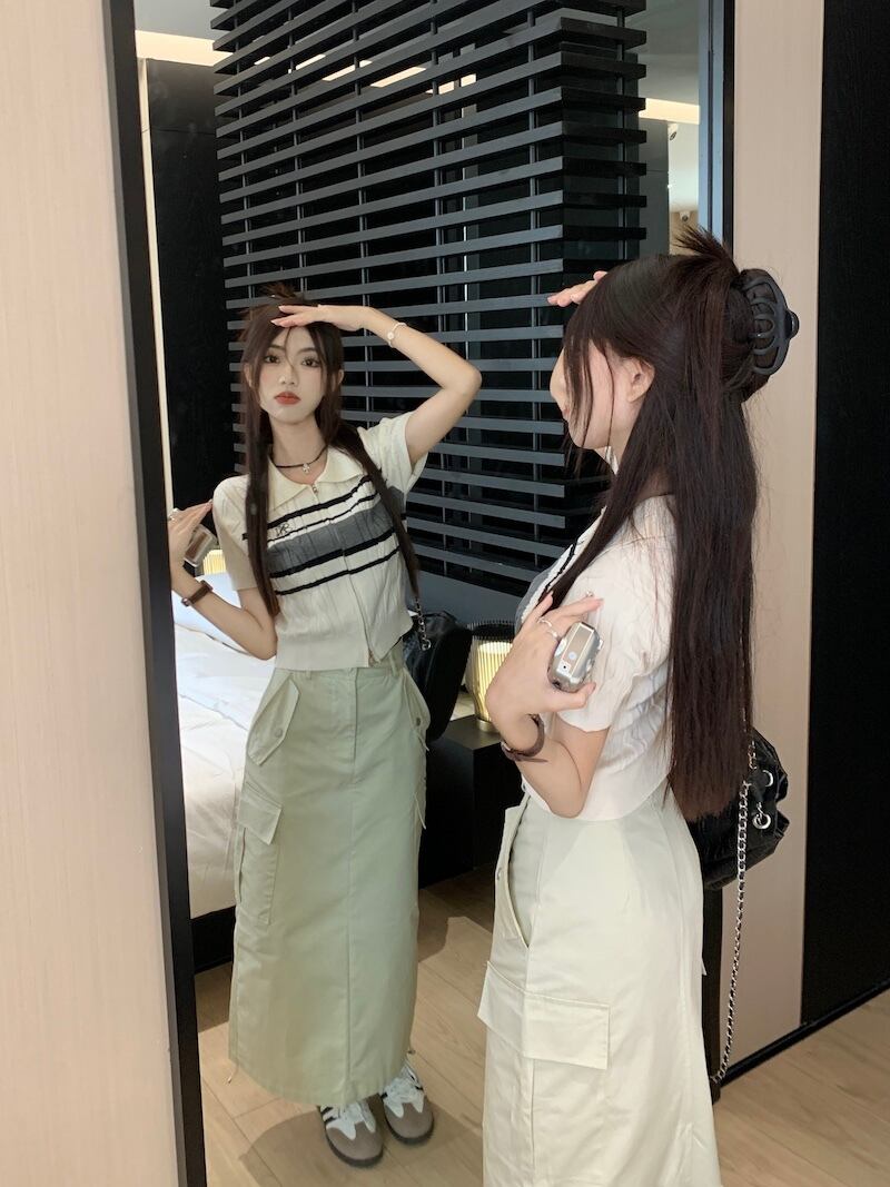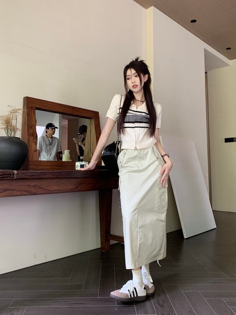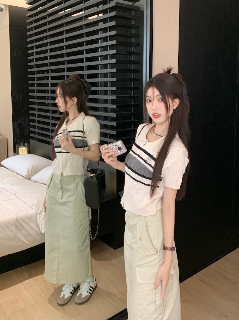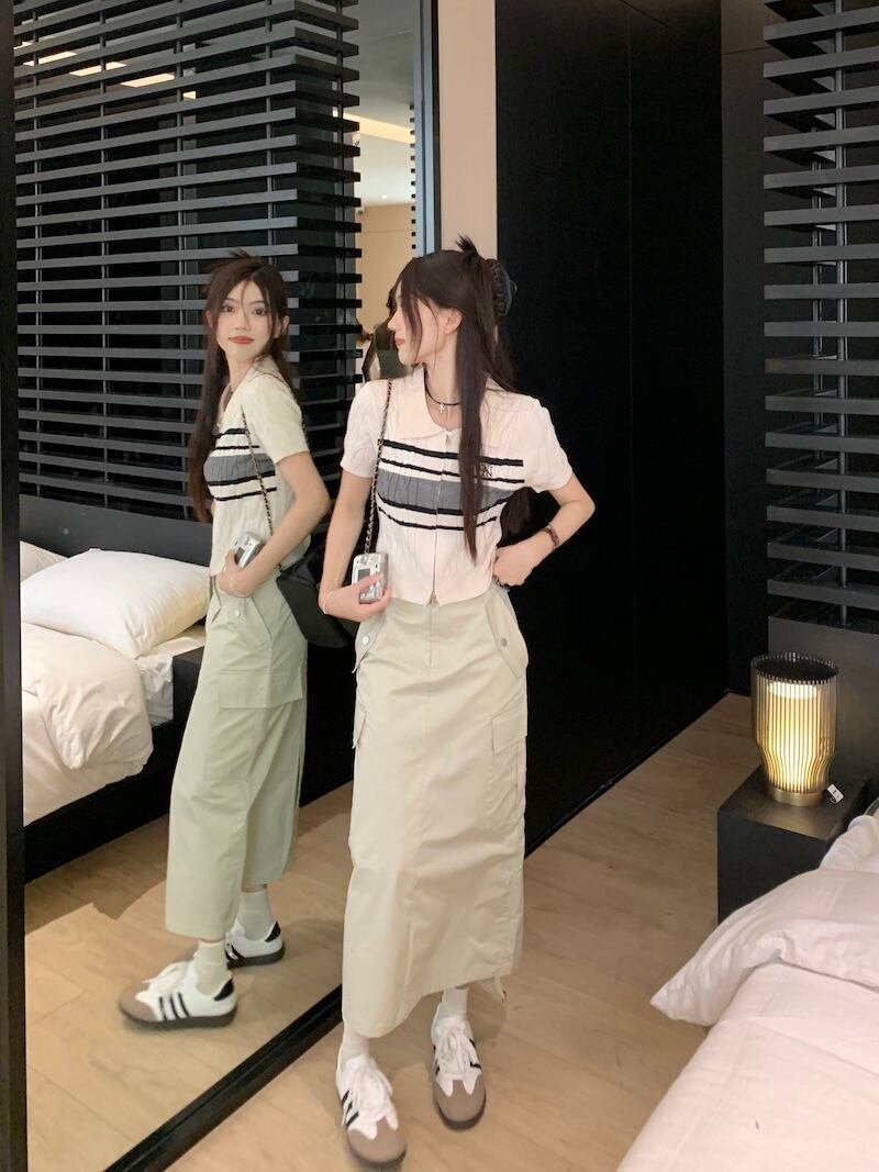 サイドポケットスカート+サマーニット 半袖 ポロシャツ セットアップ 韓国 レディース