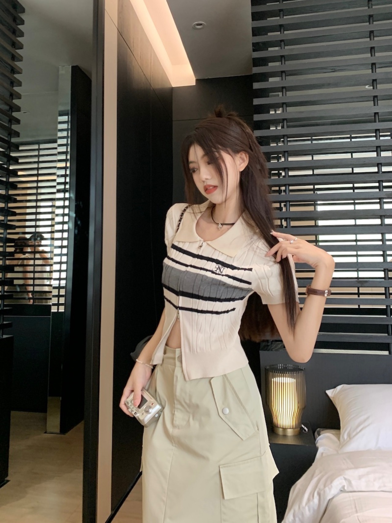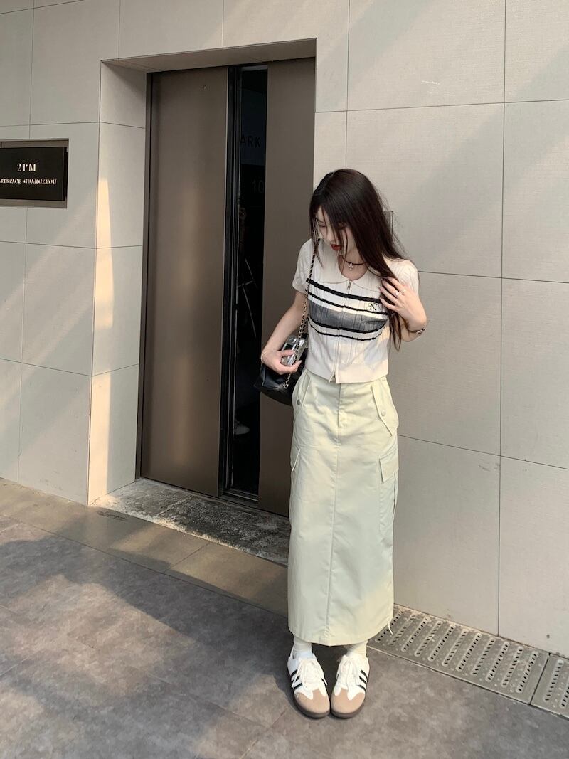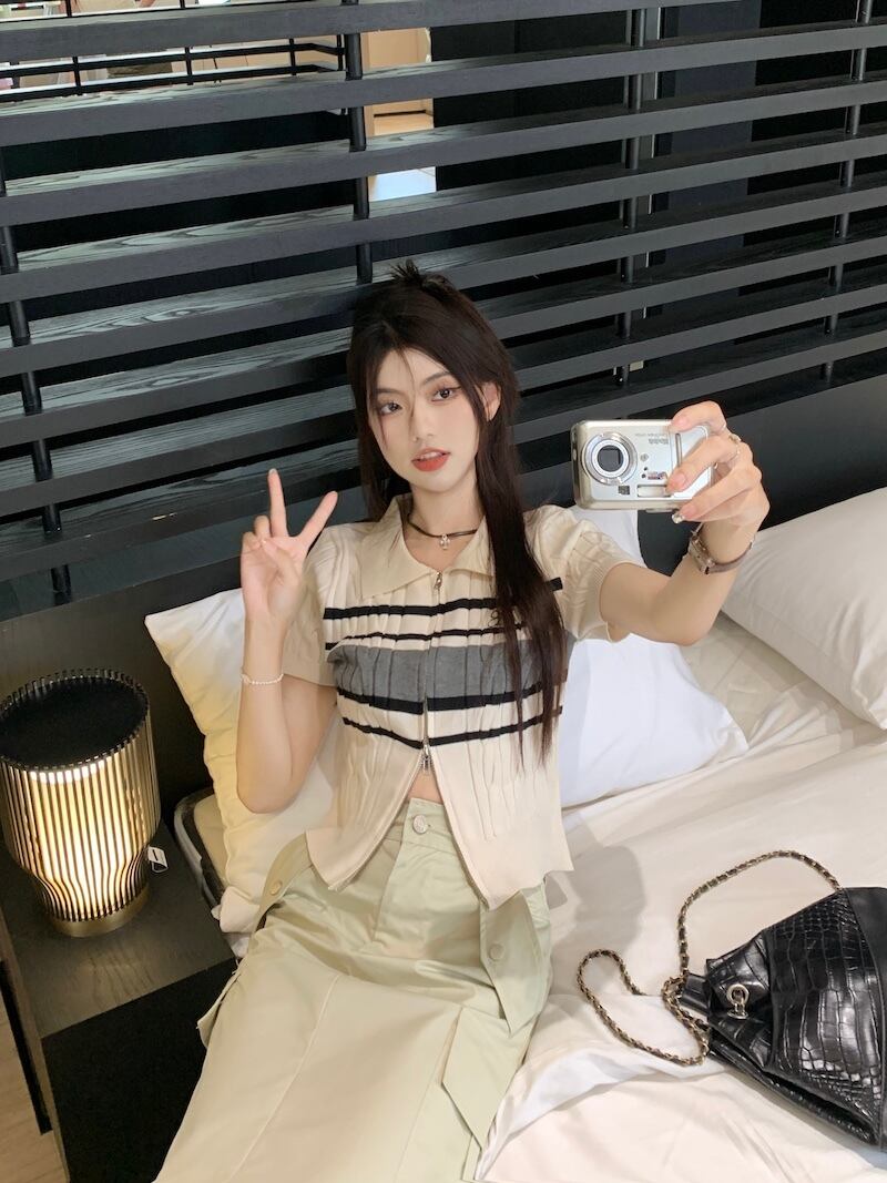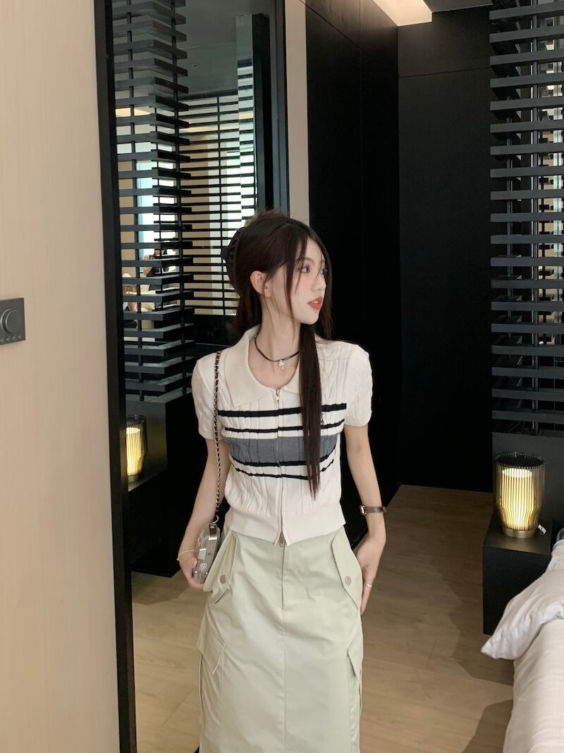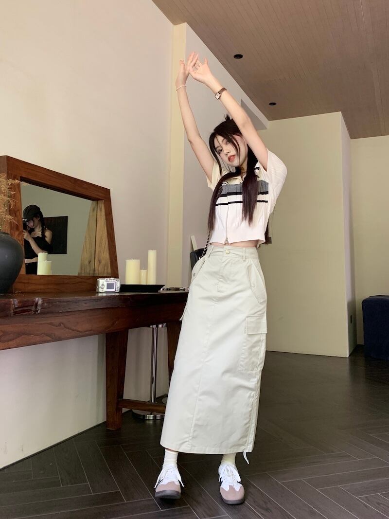 サイドポケットスカート+サマーニット 半袖 ポロシャツ セットアップ 韓国 レディース