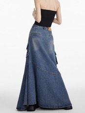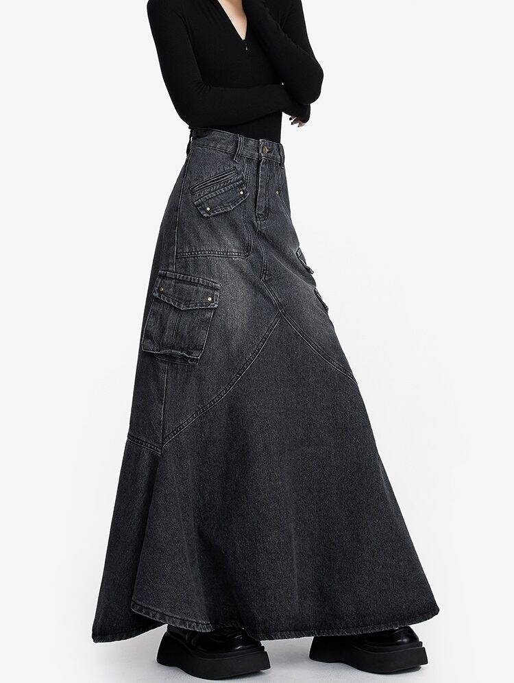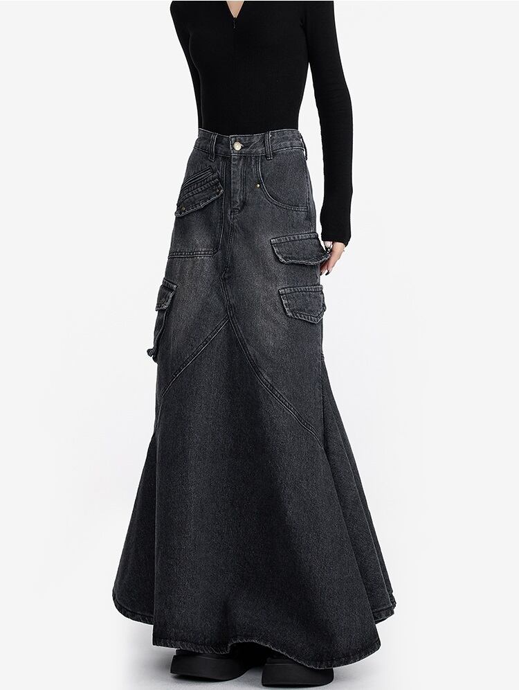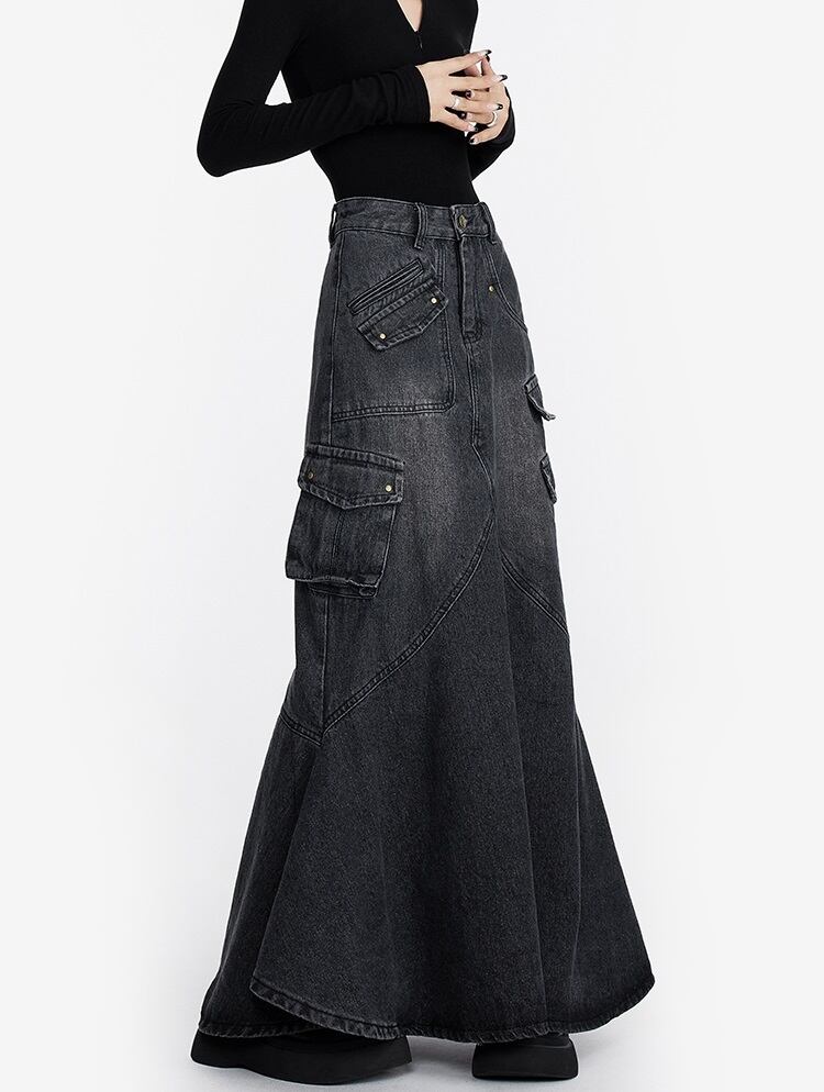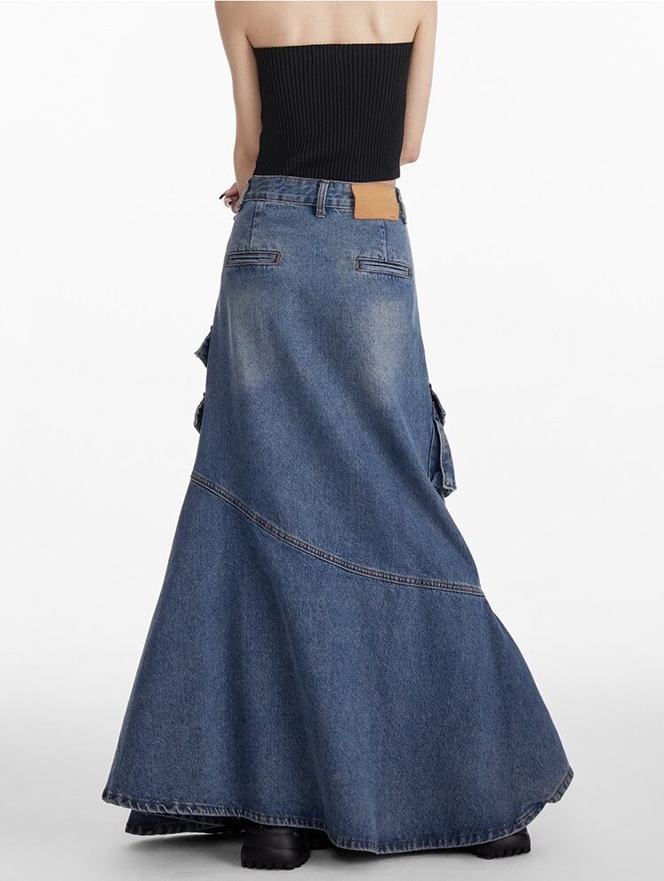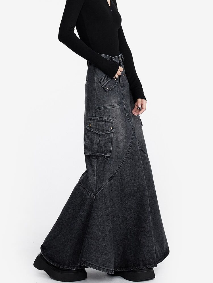 デニム ロングスカート フリルデザイン レディース フィッシュテール 韓国