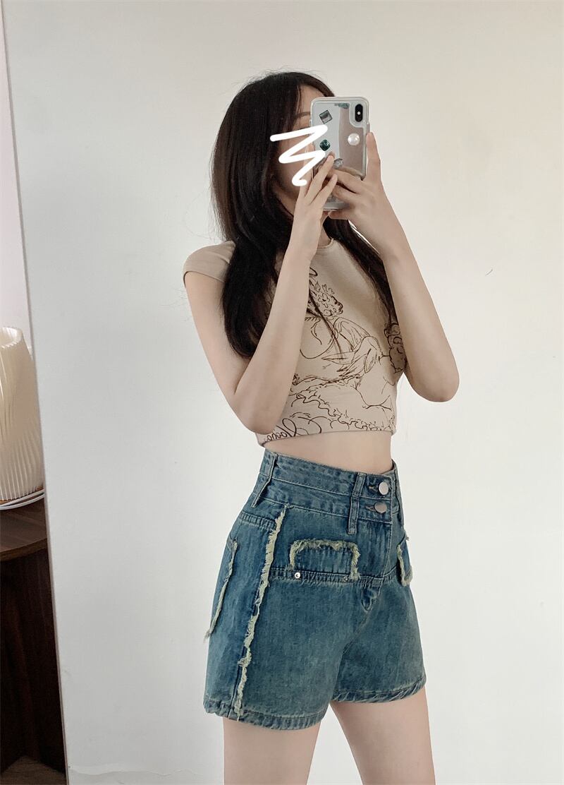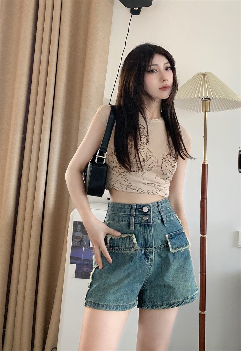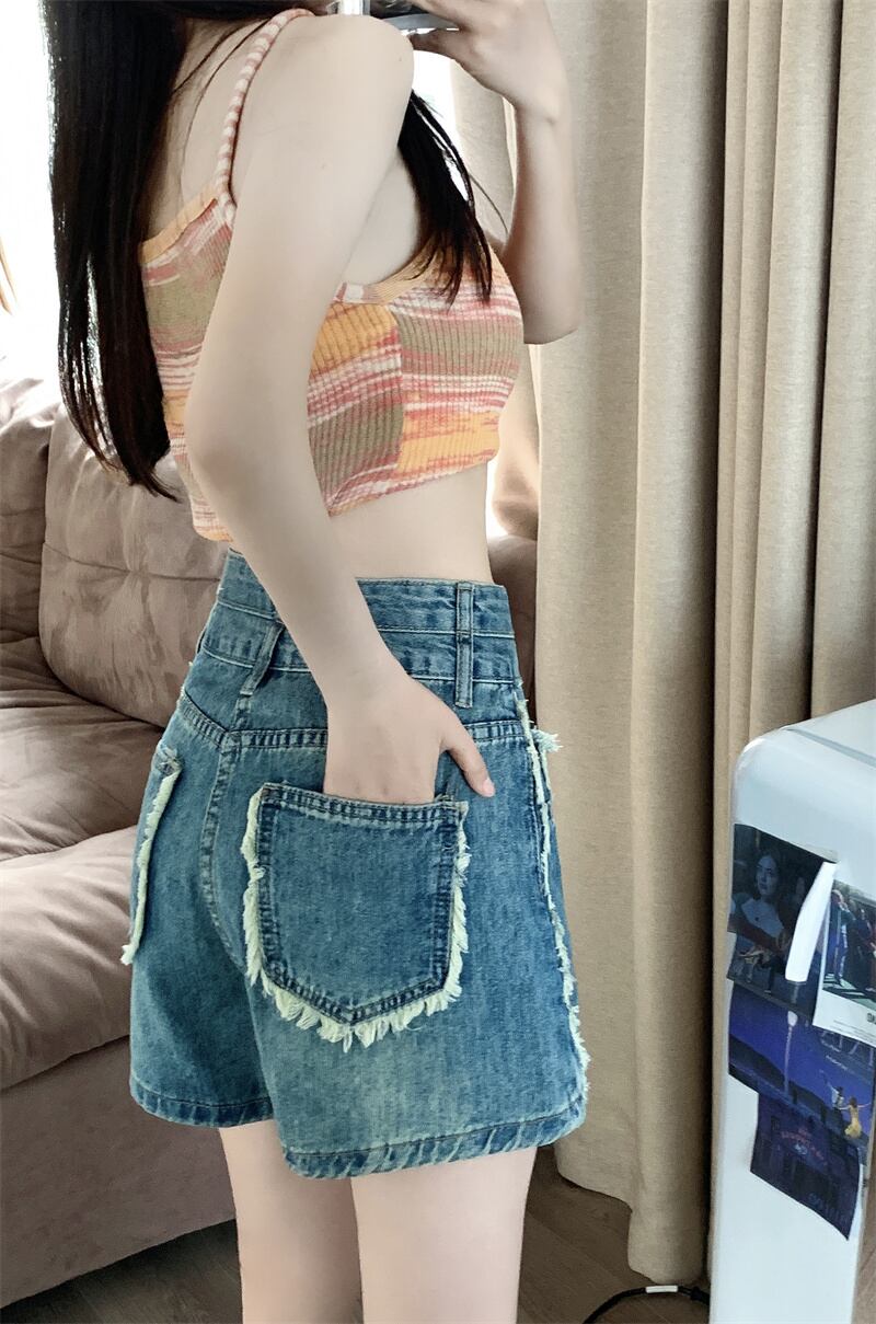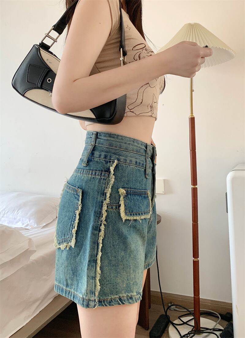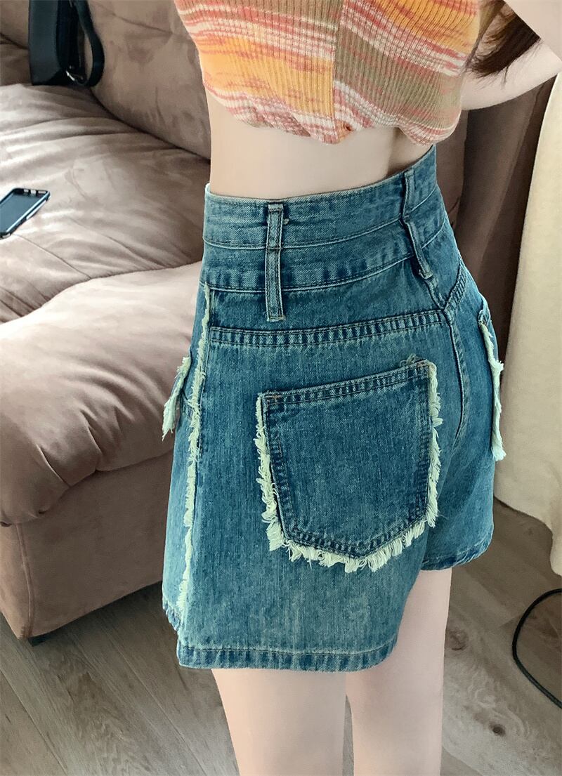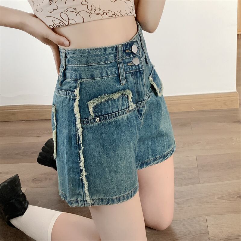 ハイウエストス Aライン ワイドレッグ デニム ショートパンツ 韓国 レディース