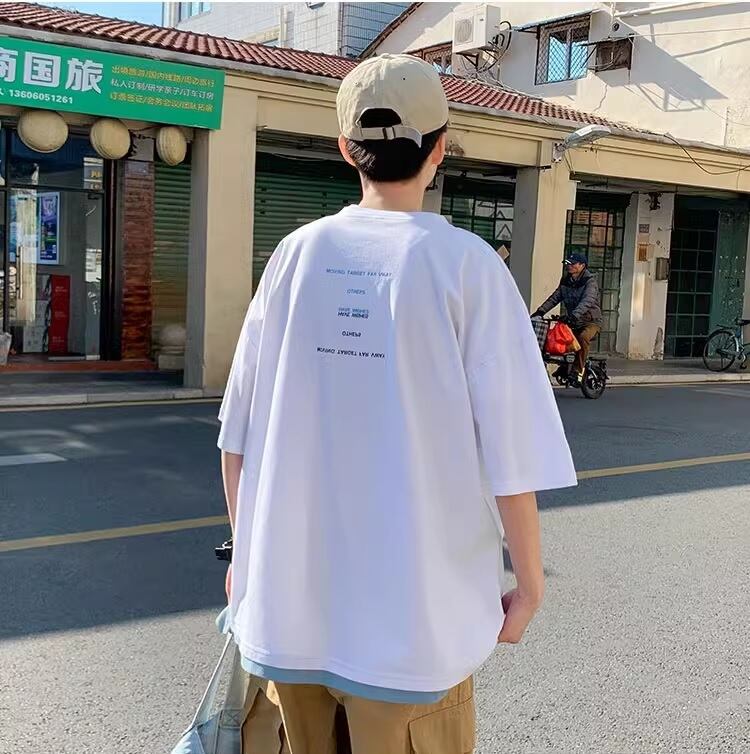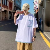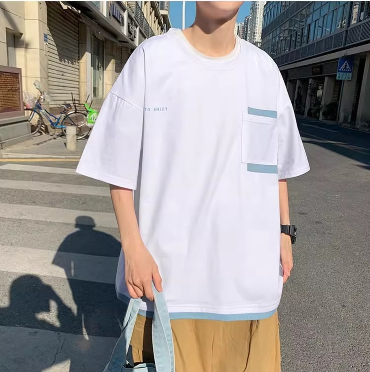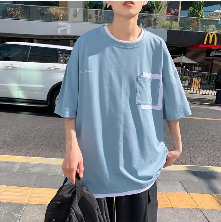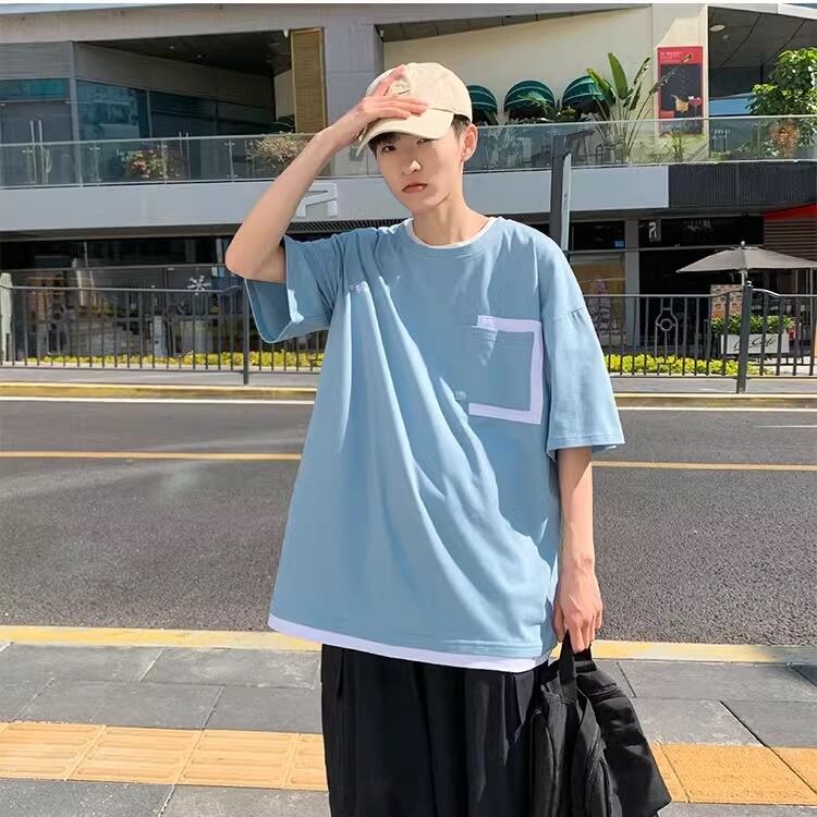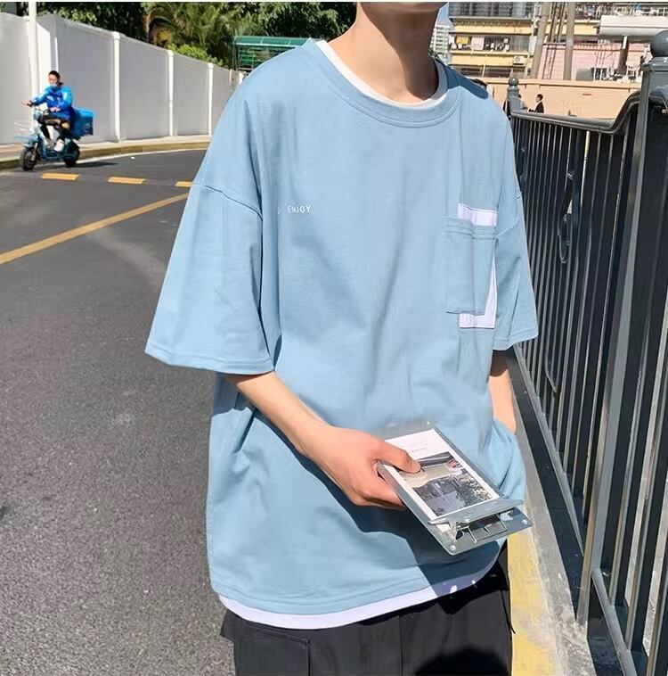 ラウンドネック Tシャツ フェイクツーピース 半袖
