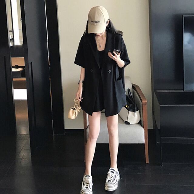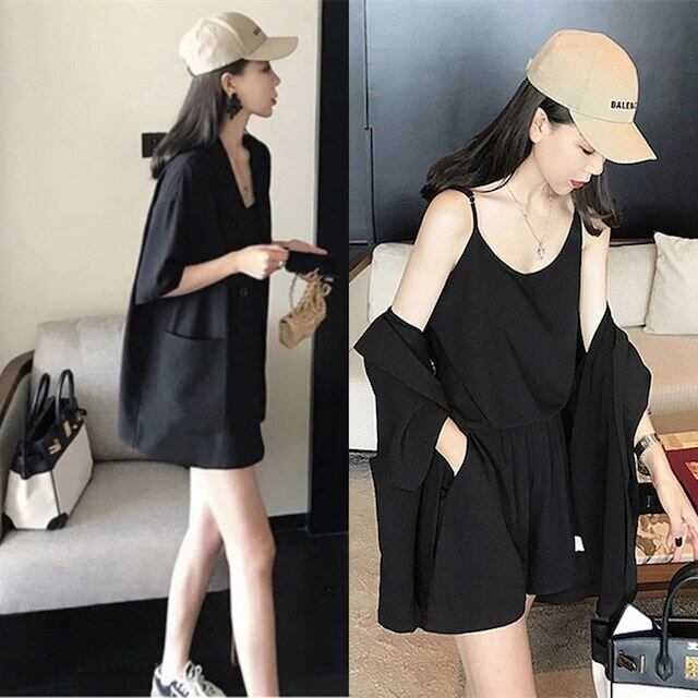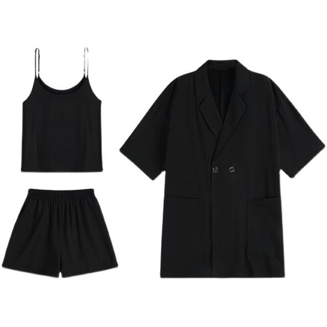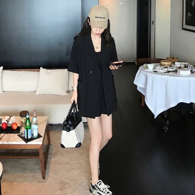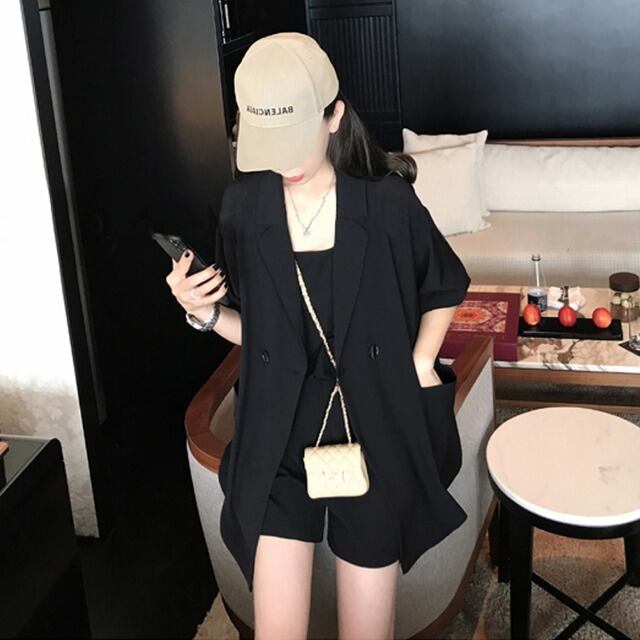 スリーピース ジャケット キャミソール ショートパンツ 3点セット 韓国 シンプル カジュアル