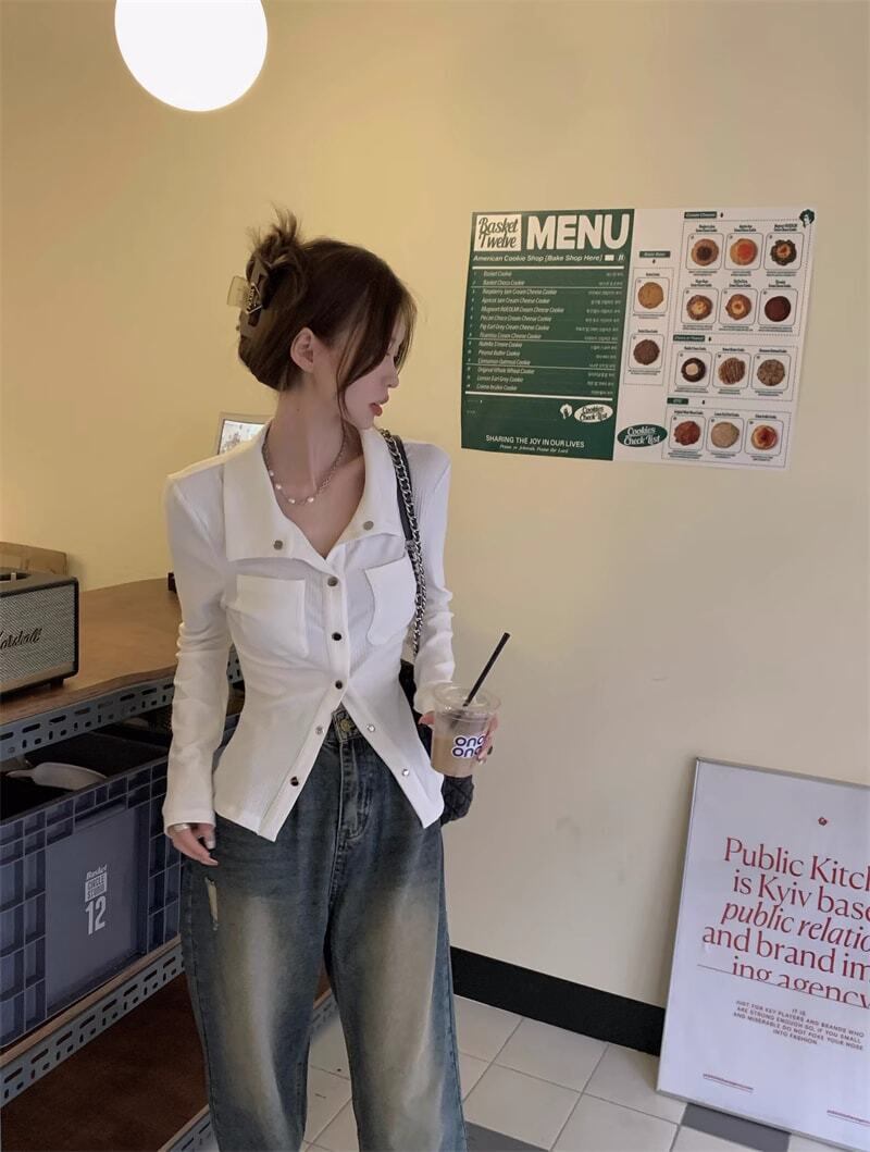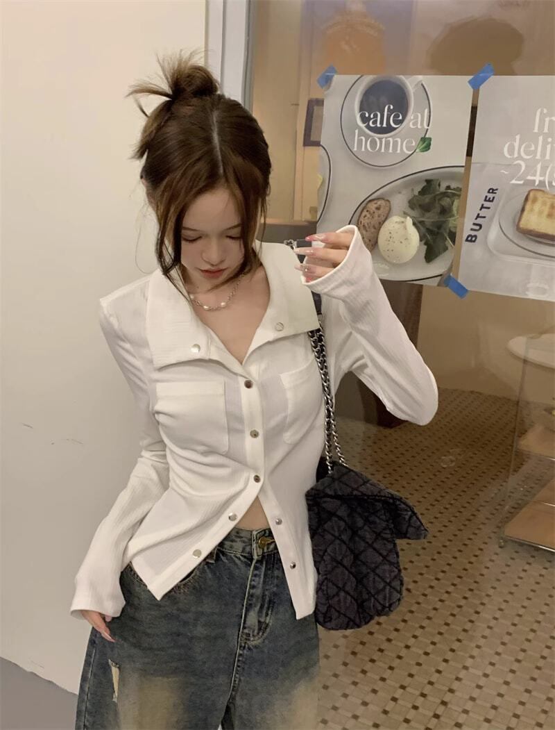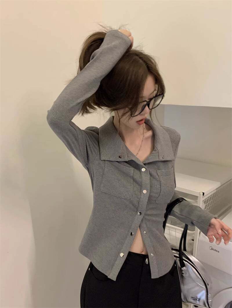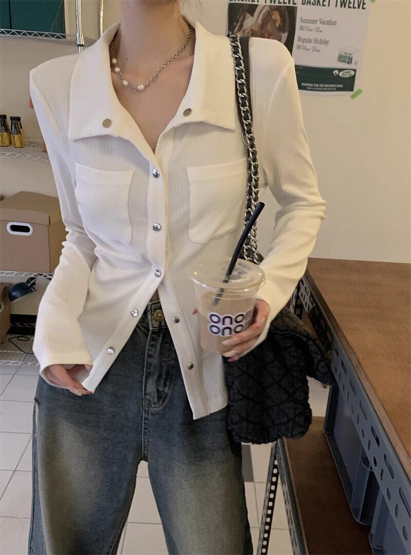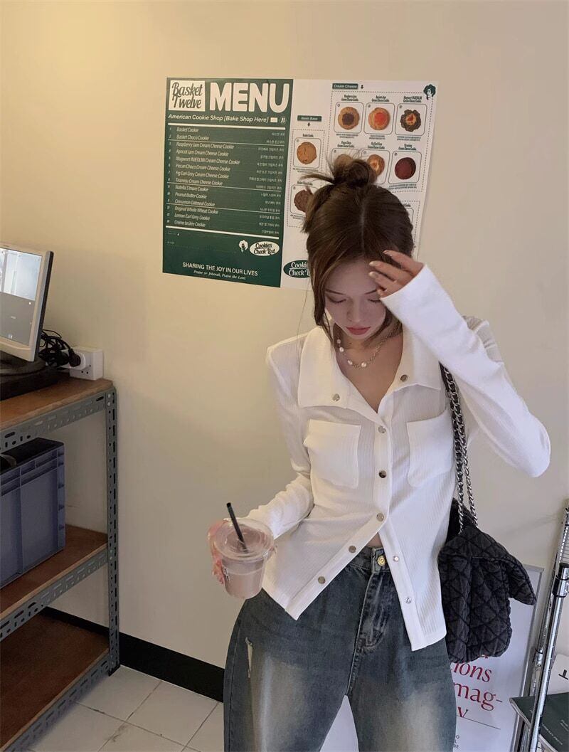 ニット 襟付き シャツ カジュアル シンプル きれいめ 韓国ファッション