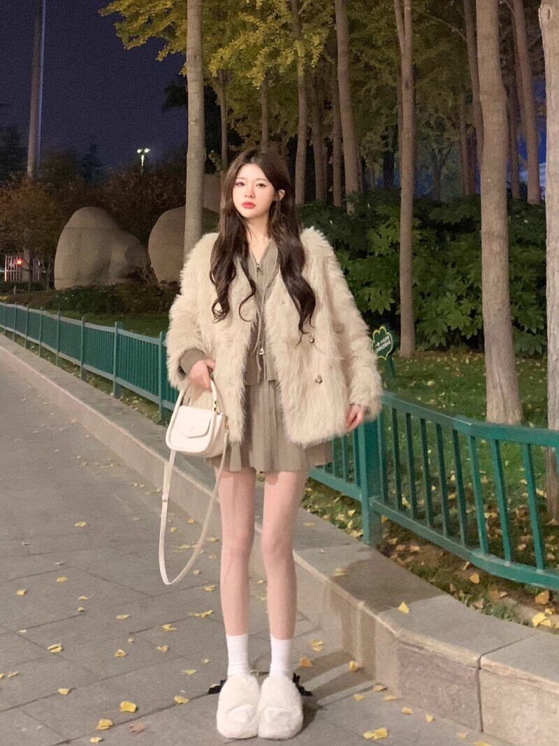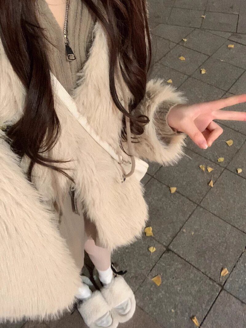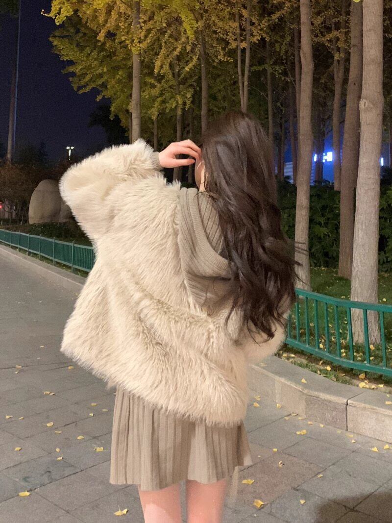 フェイクファーコート 大人可愛い スリム おしゃれな 韓国 大人カジュアル 毛皮