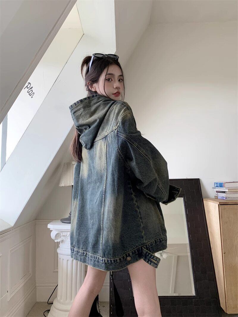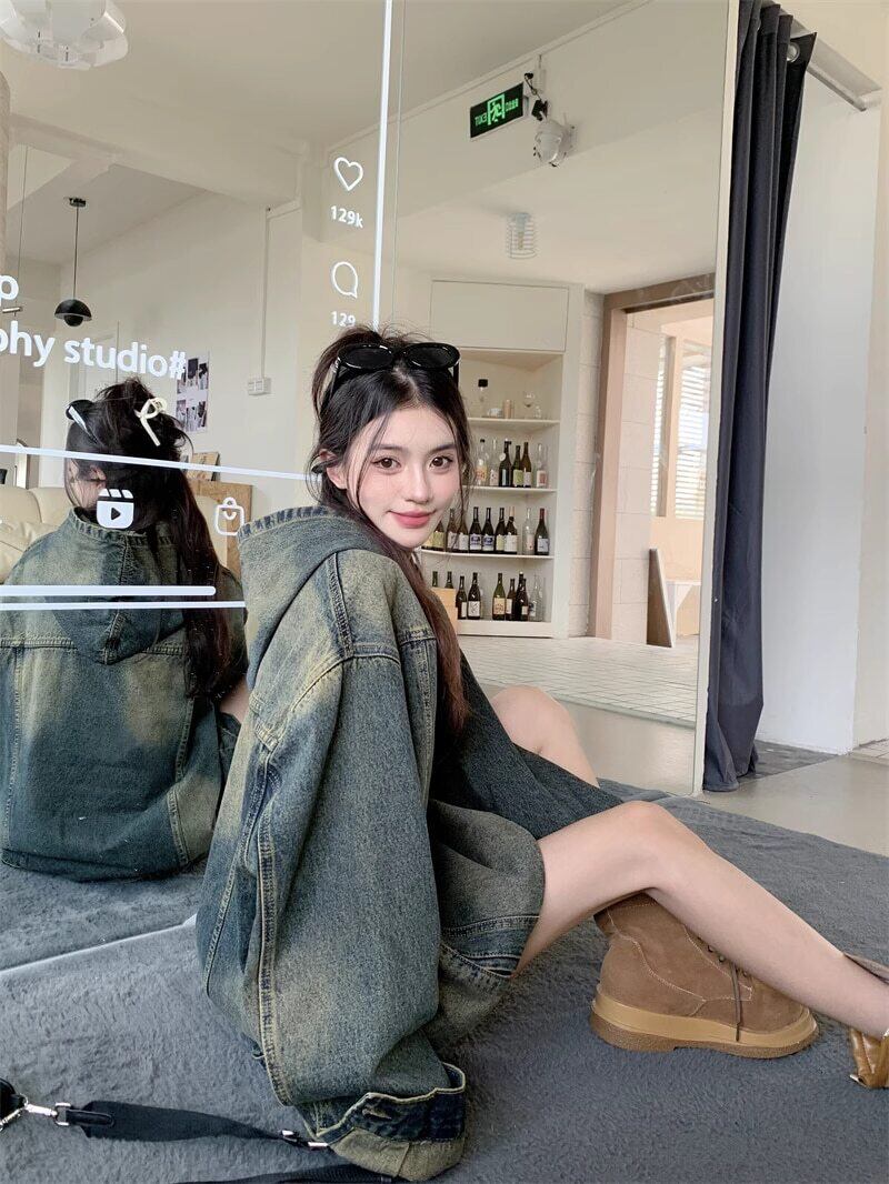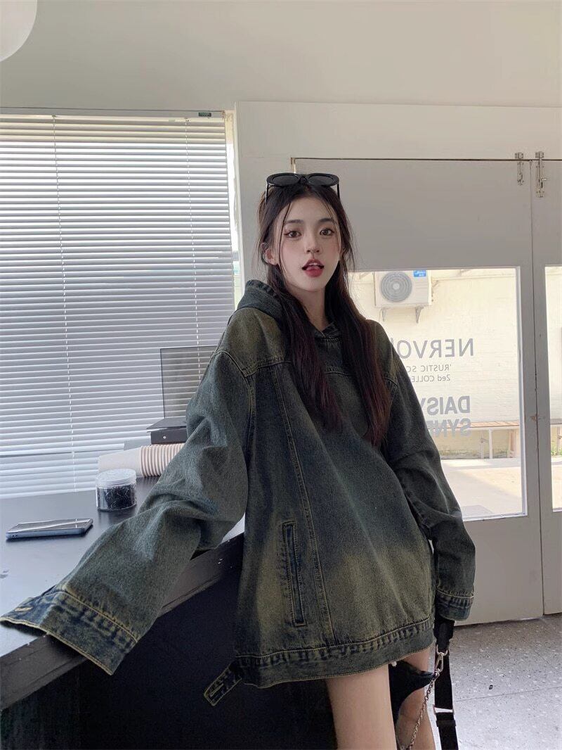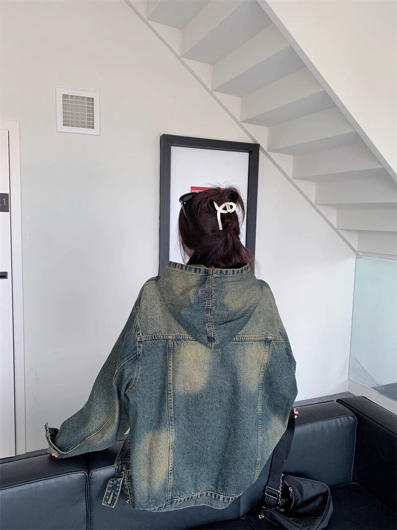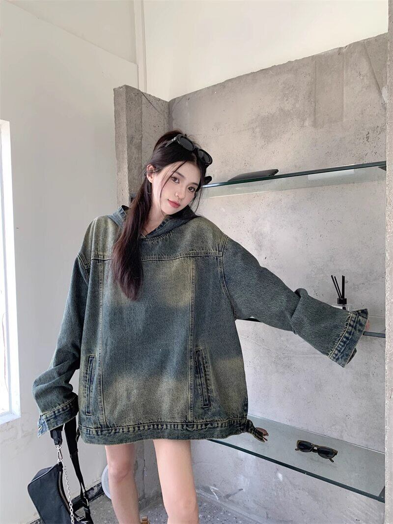 デニム オーバーサイズ プルオーバー パーカー韓国 カジュアル ストリート ジャケット フーディ