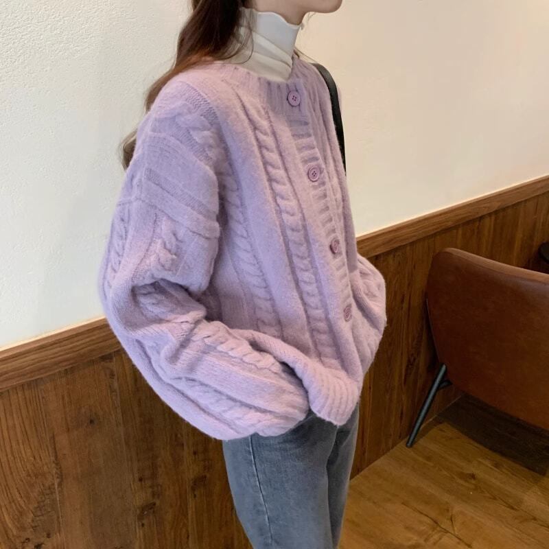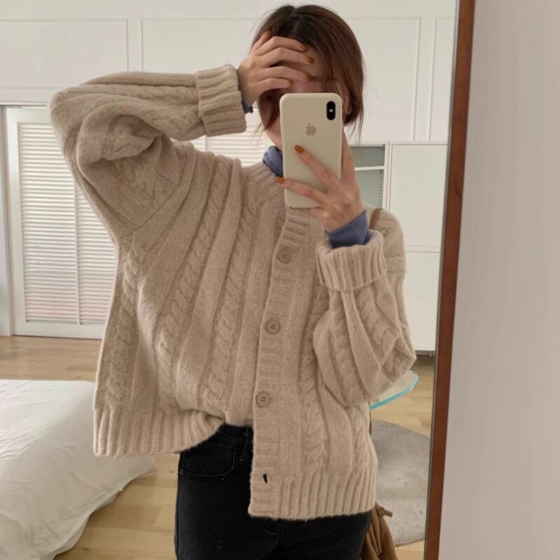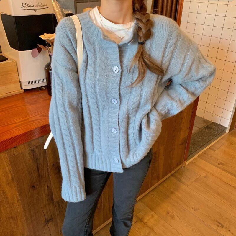 ニットカーディガン ケーブルニット 大人かわいい 韓国 カジュアル 大人女子 こなれ感 おしゃれ
