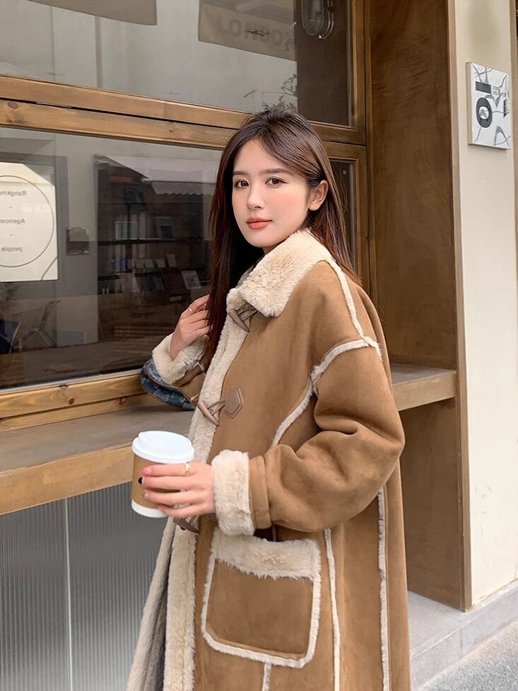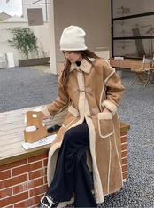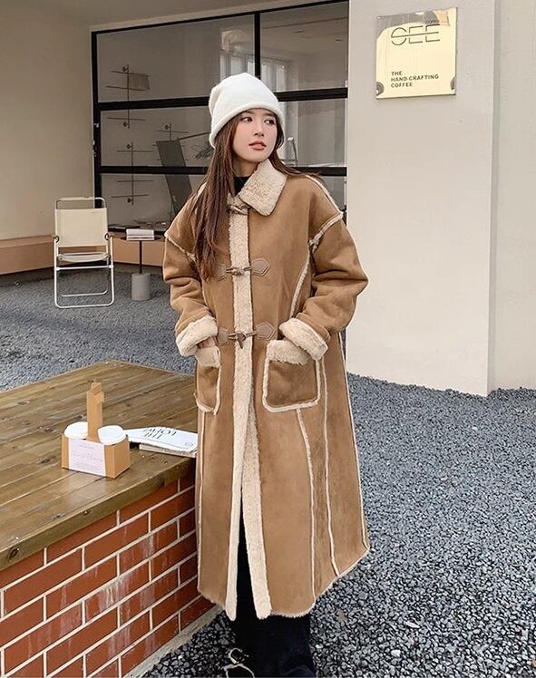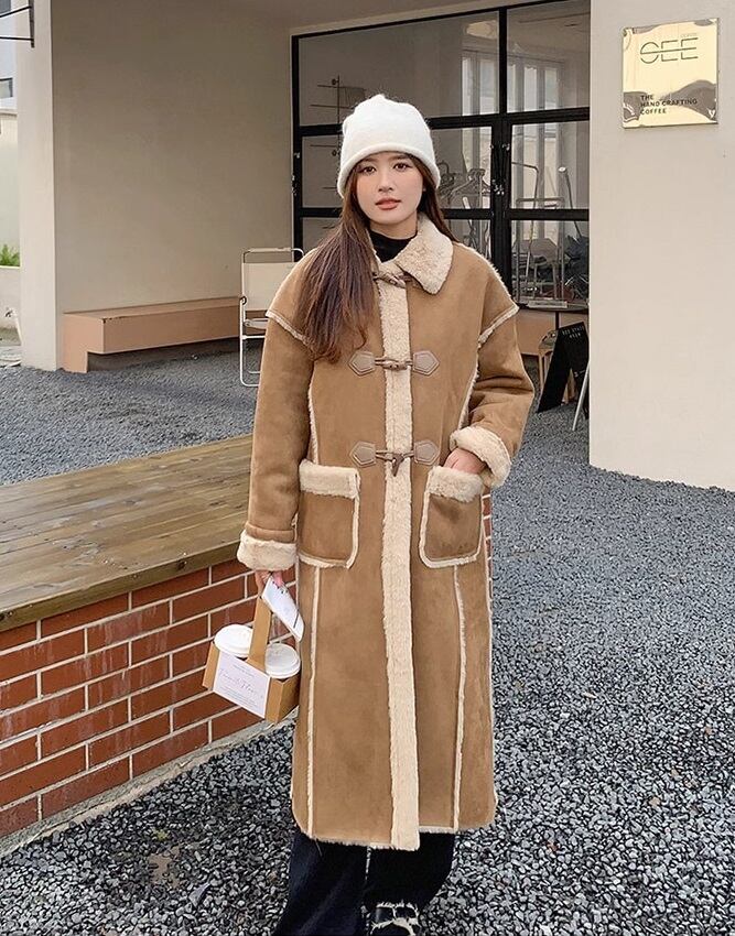 フェイクムートン ロング コート ホーンボタン 大人カジュアル 大人可愛い ボアコート ロング丈