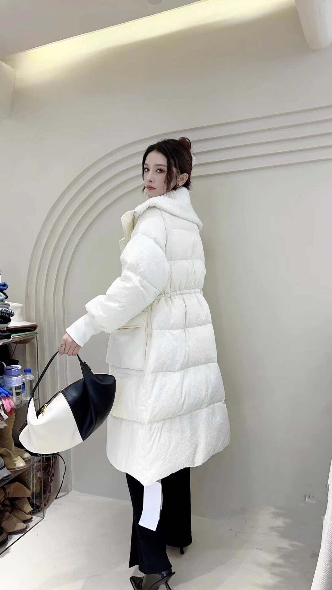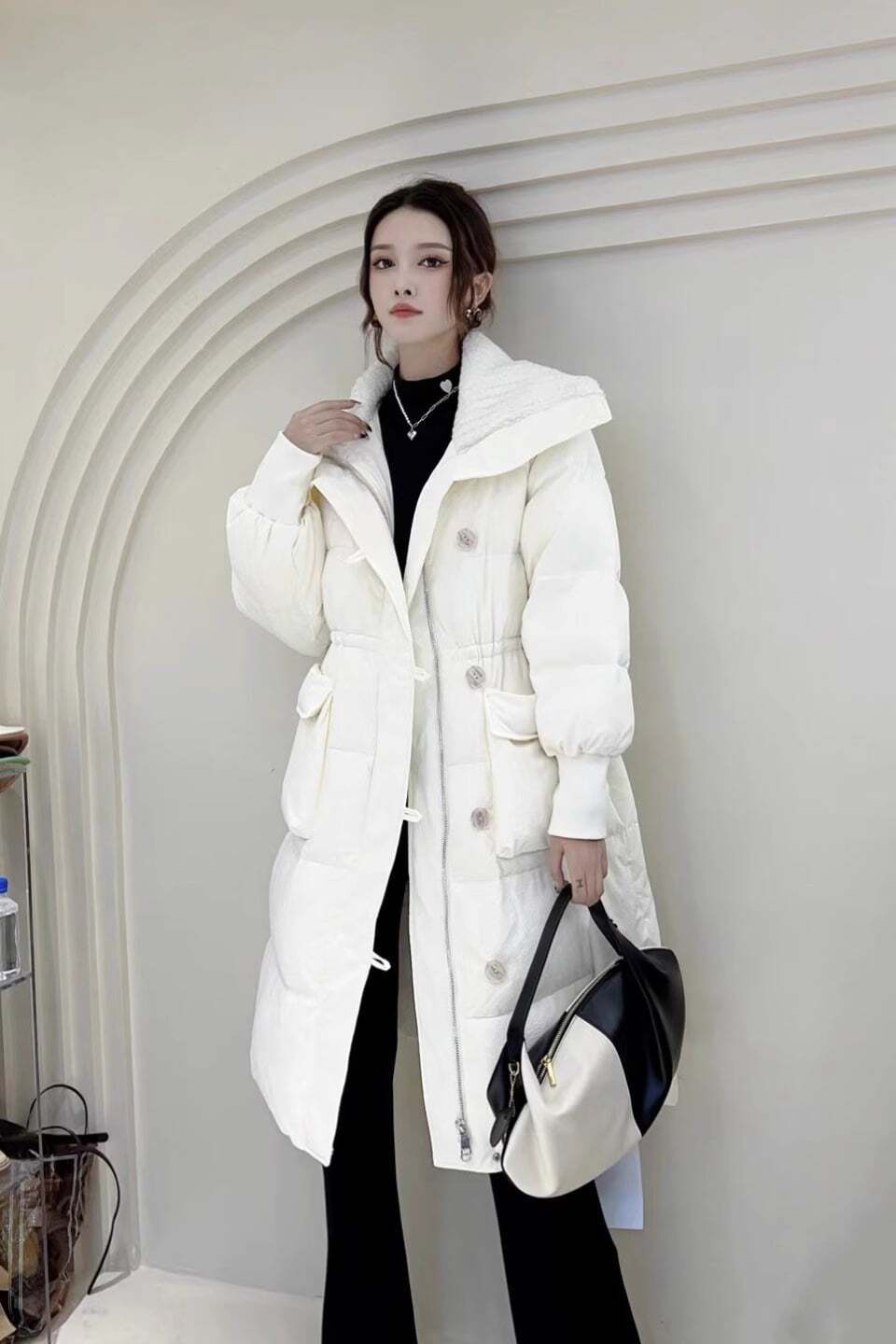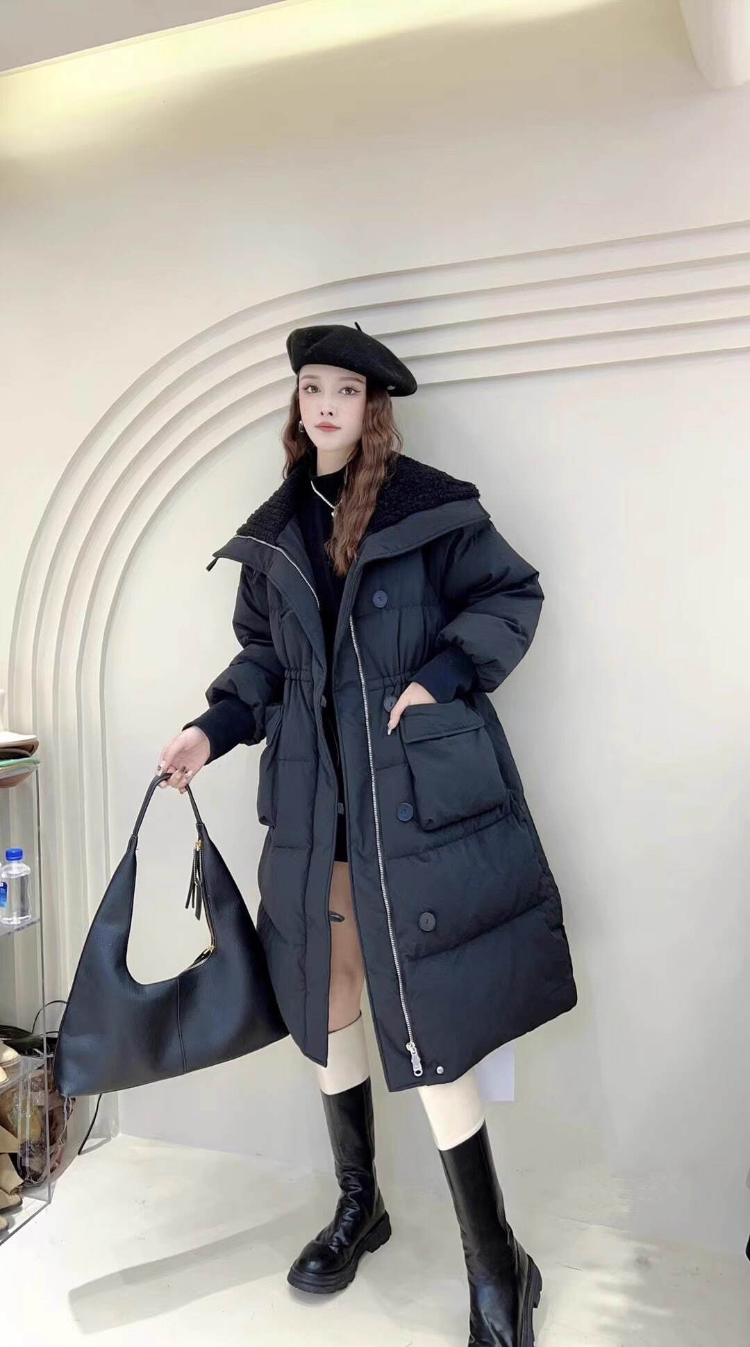 寒い冬でも暖かさを保ちながら、女性らしいシルエットをキープ。上品なラペルカラーがエレガントさをプラスします。