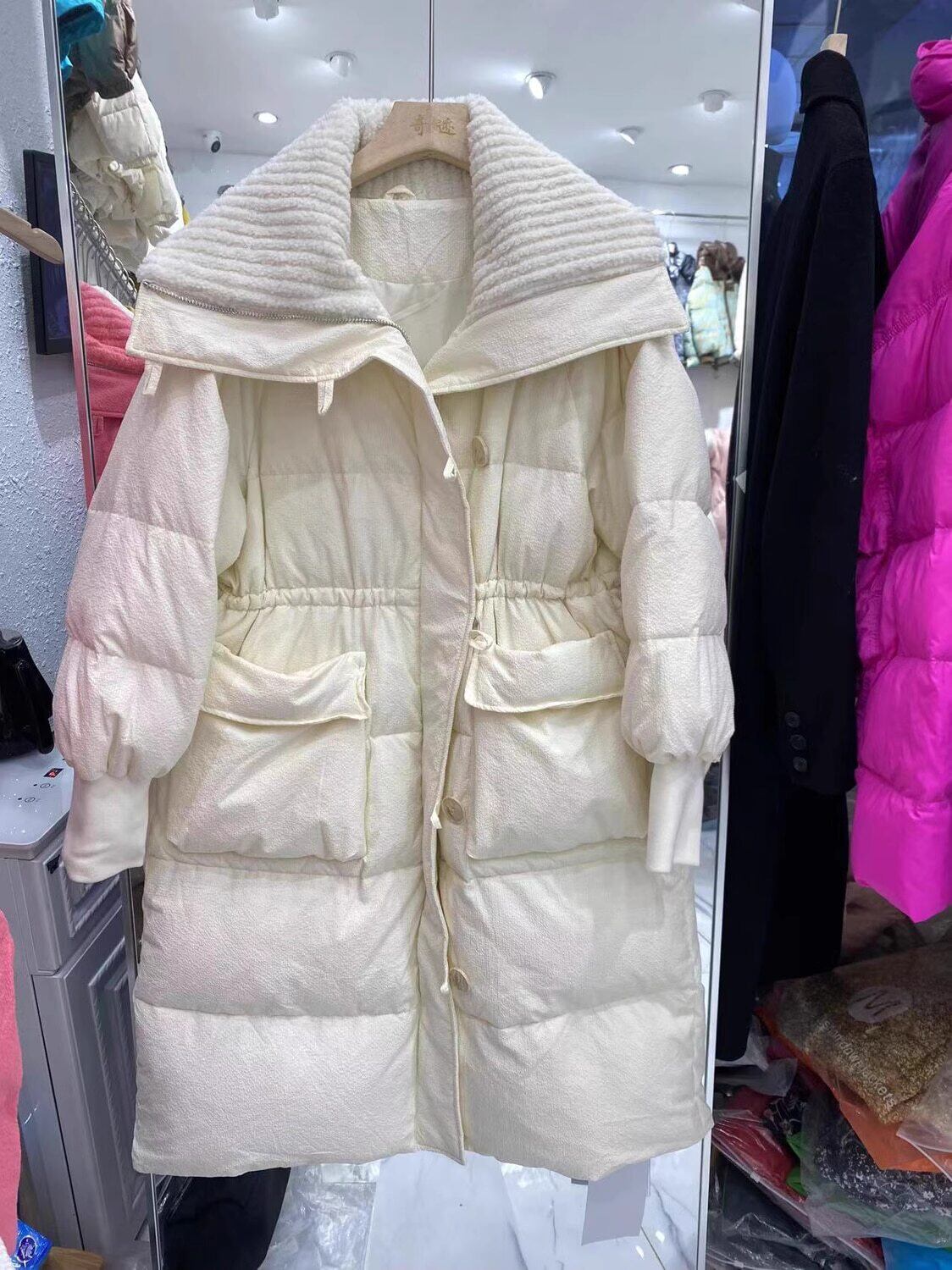 ロング ダウンコート 大人カジュアル 韓国 ニット ダウンジャケット ラペルコート