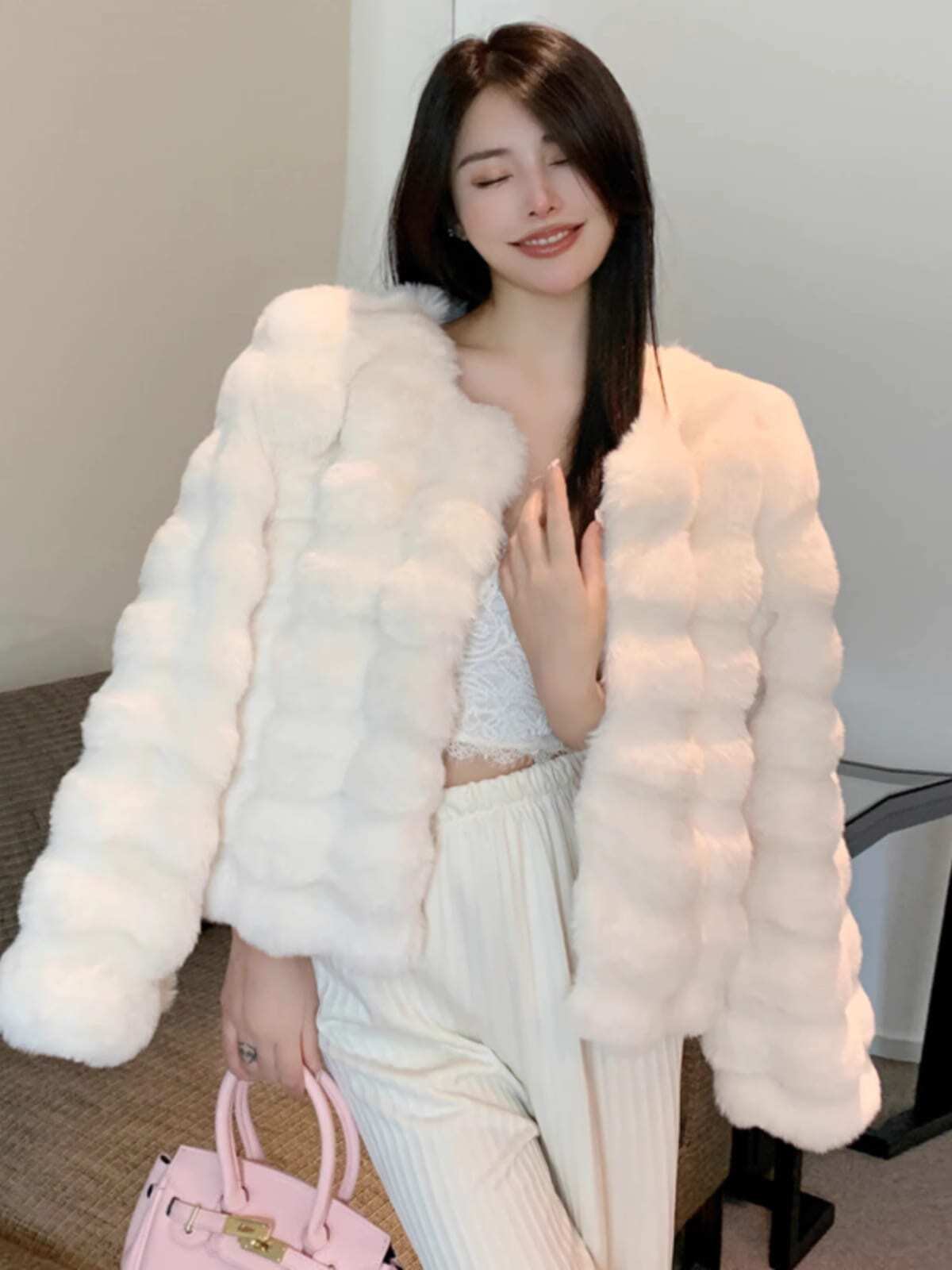 エコファー コート ふわふわ フェイクファーコート 韓国 大人カジュアル モコモコ