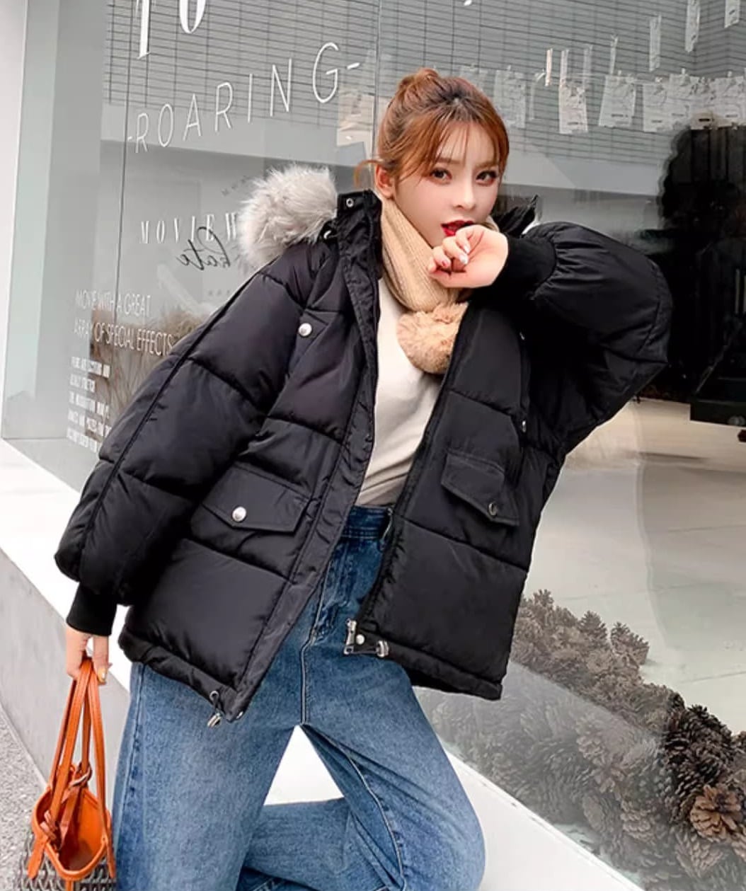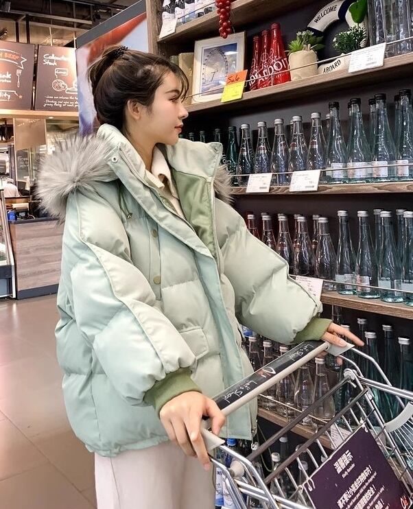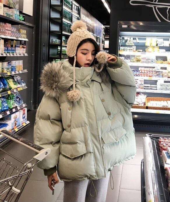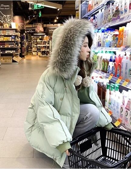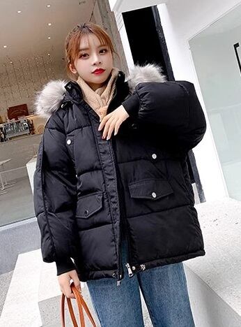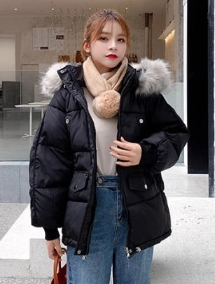 【低身長さんにも】フェイクファーダウンジャケット フード 韓国 ペディン