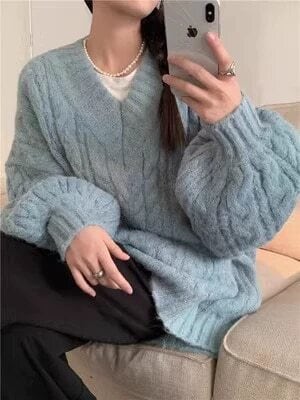 【低身長さんにも】Vネックツイストセーター